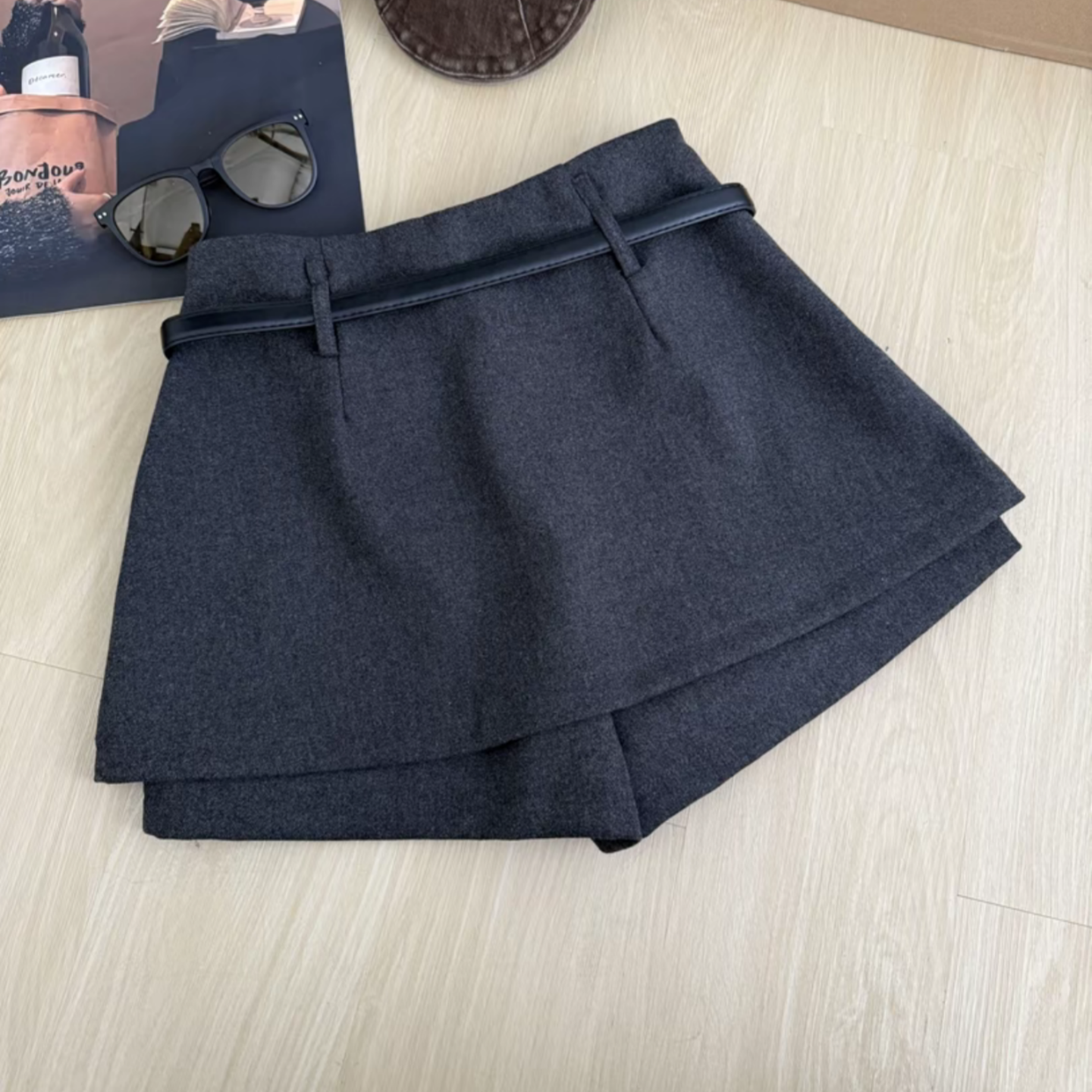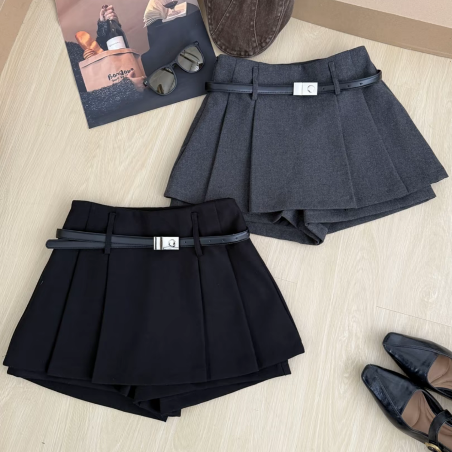 假两件灰色毛呢百褶短裙裤女大码胖mm秋冬2025新款高腰a字半身裙