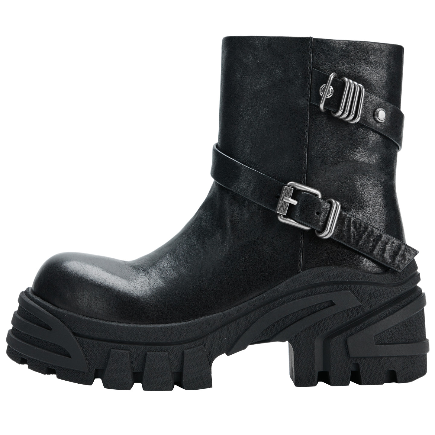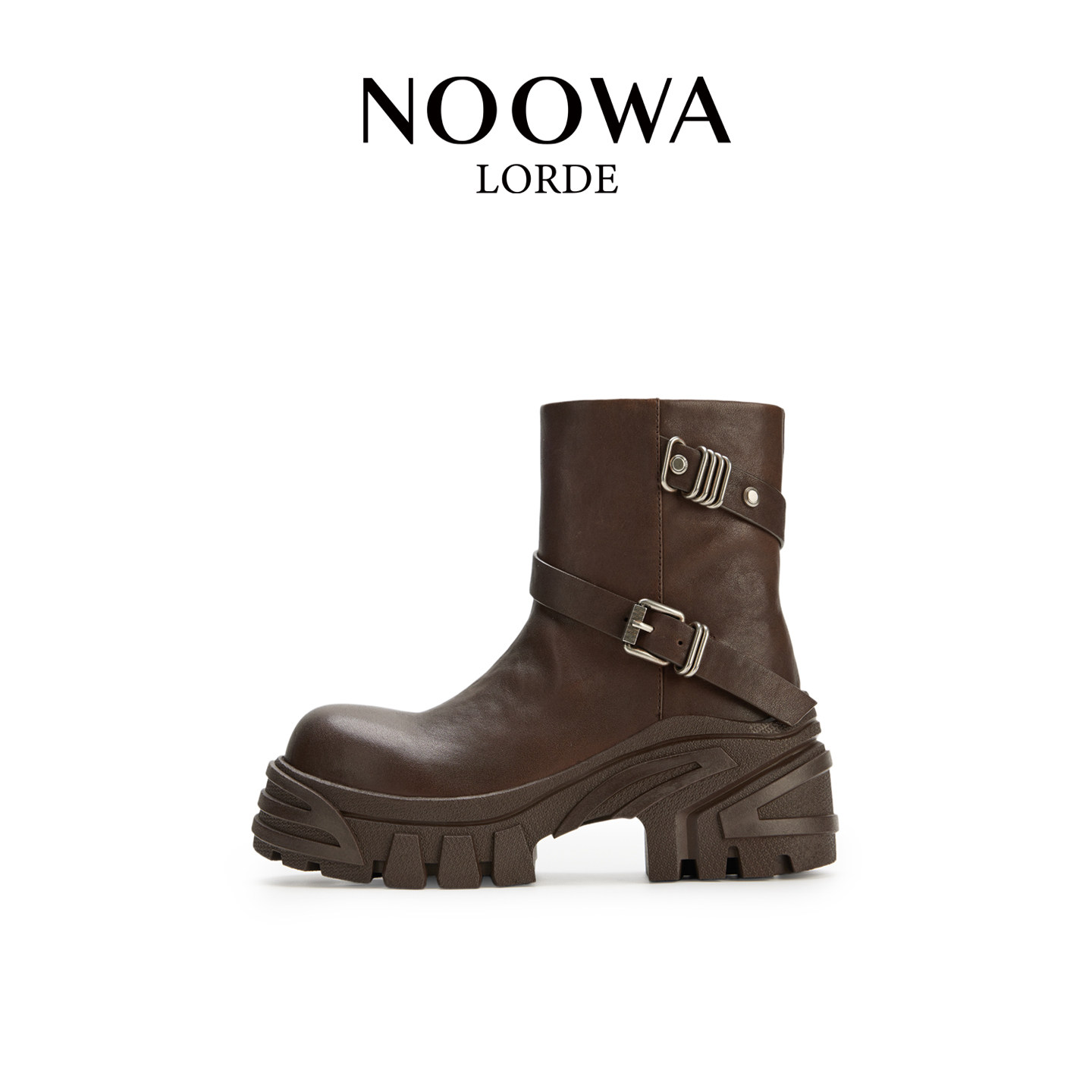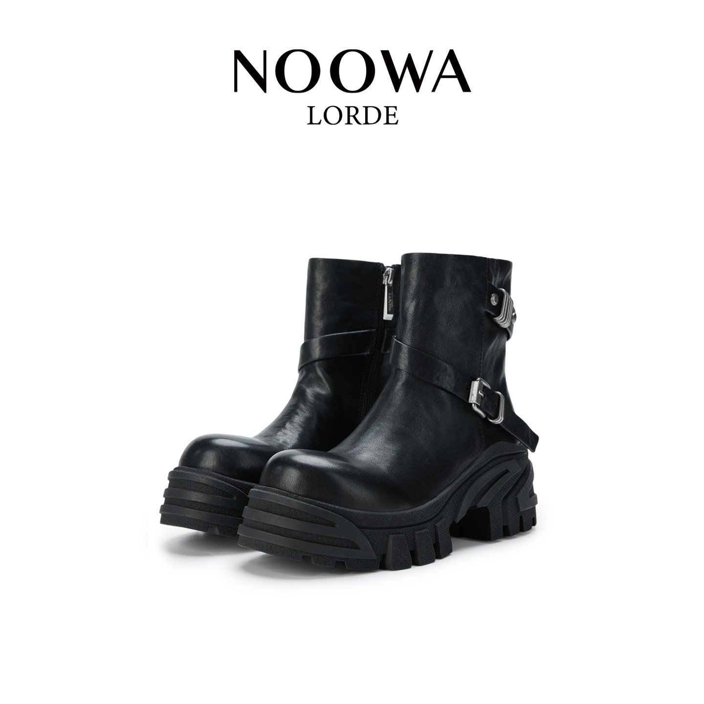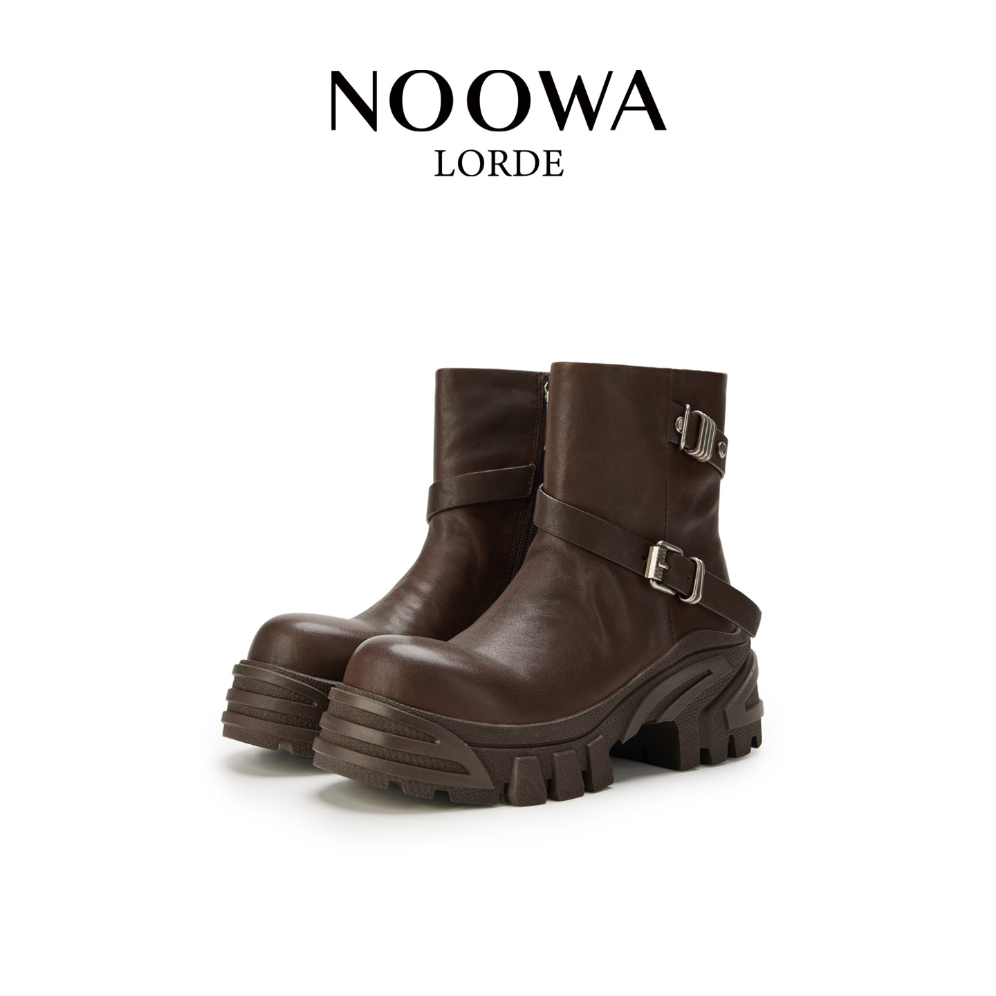 NOOWA真皮骑士靴女2025秋冬款时尚粗跟增高百搭英伦风皮带扣短靴