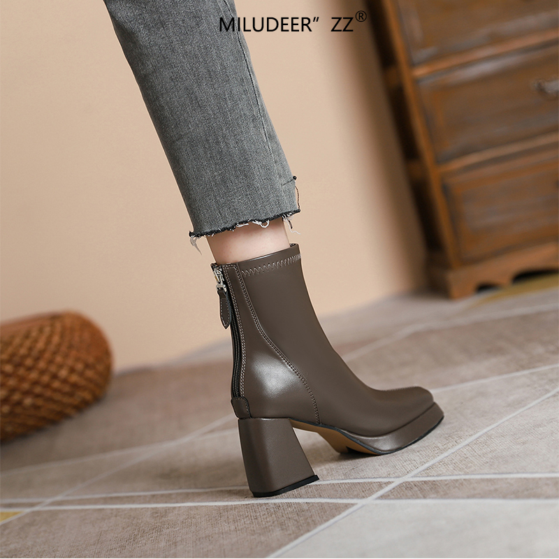 防水台短靴女2024新款秋款显高方头高跟短靴女粗跟小个子靴子女