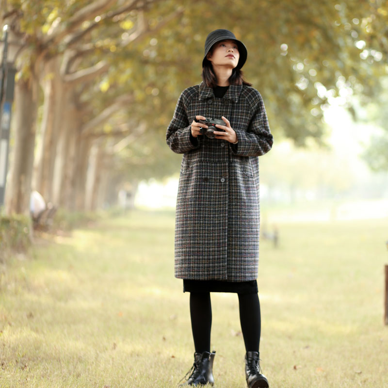 中长款毛呢外套冬季羊毛格子大衣