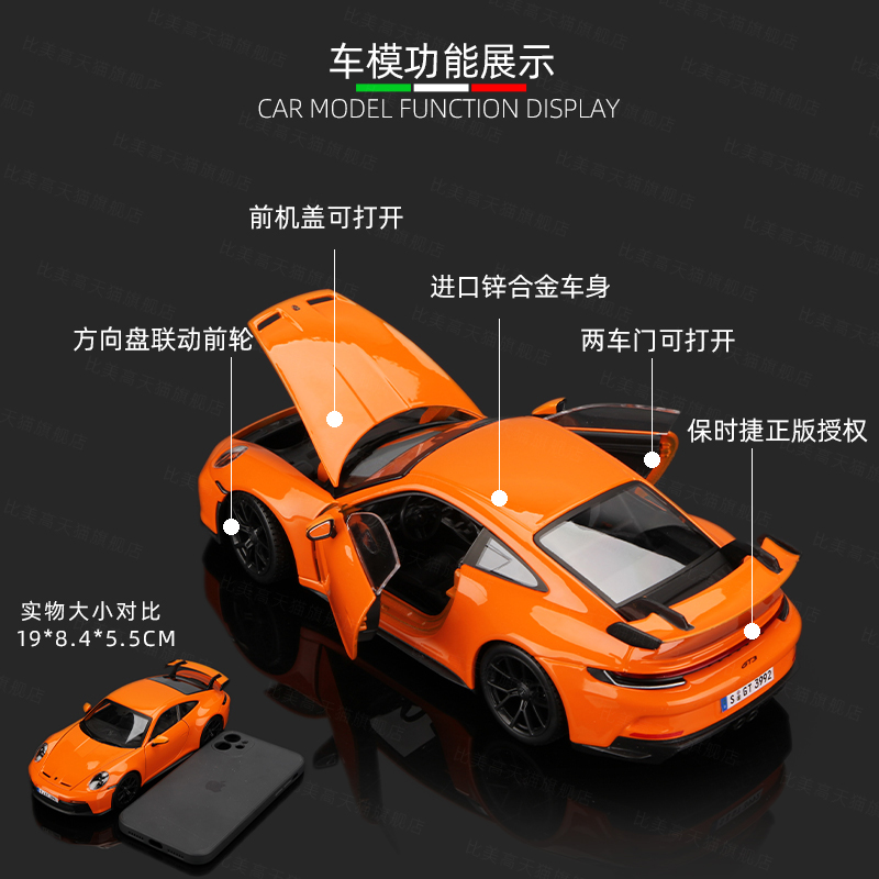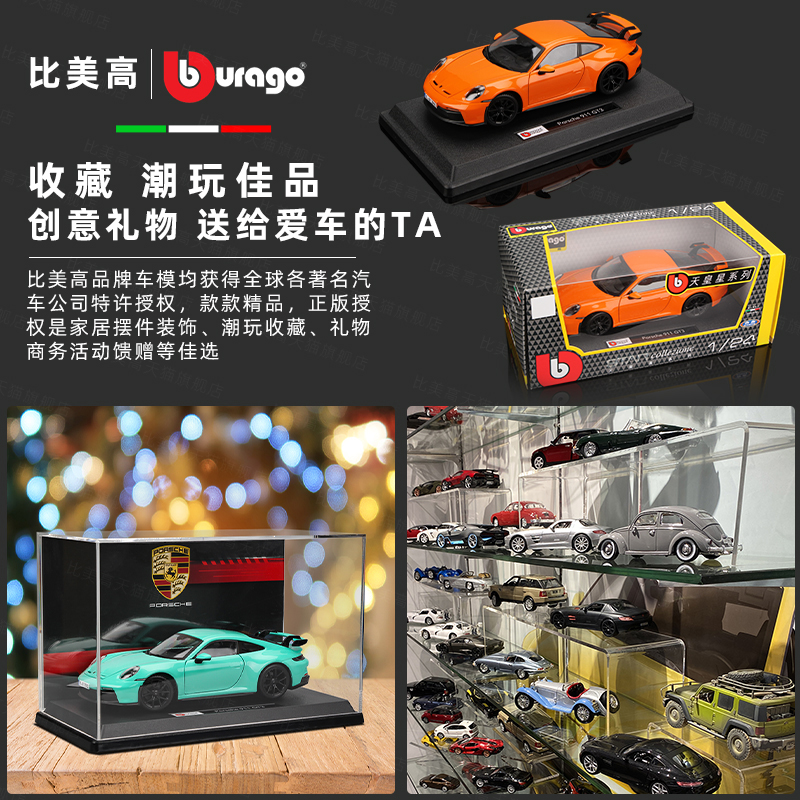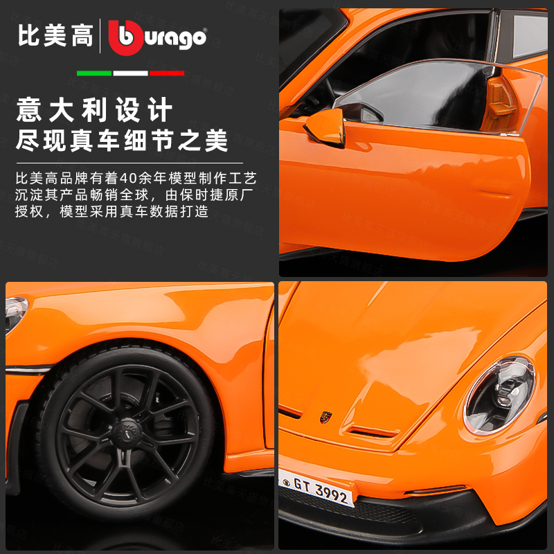 比美高1:24保时捷911车模GT3跑车模型仿真合金汽车男生玩具车礼物
