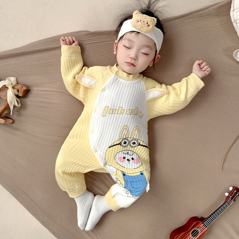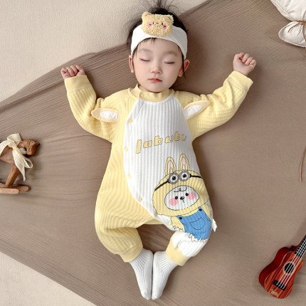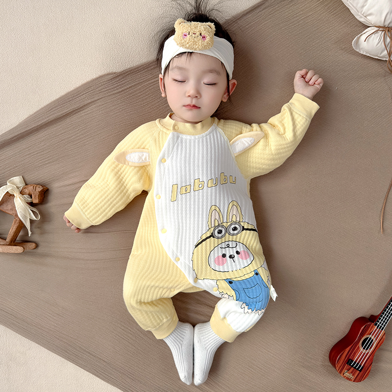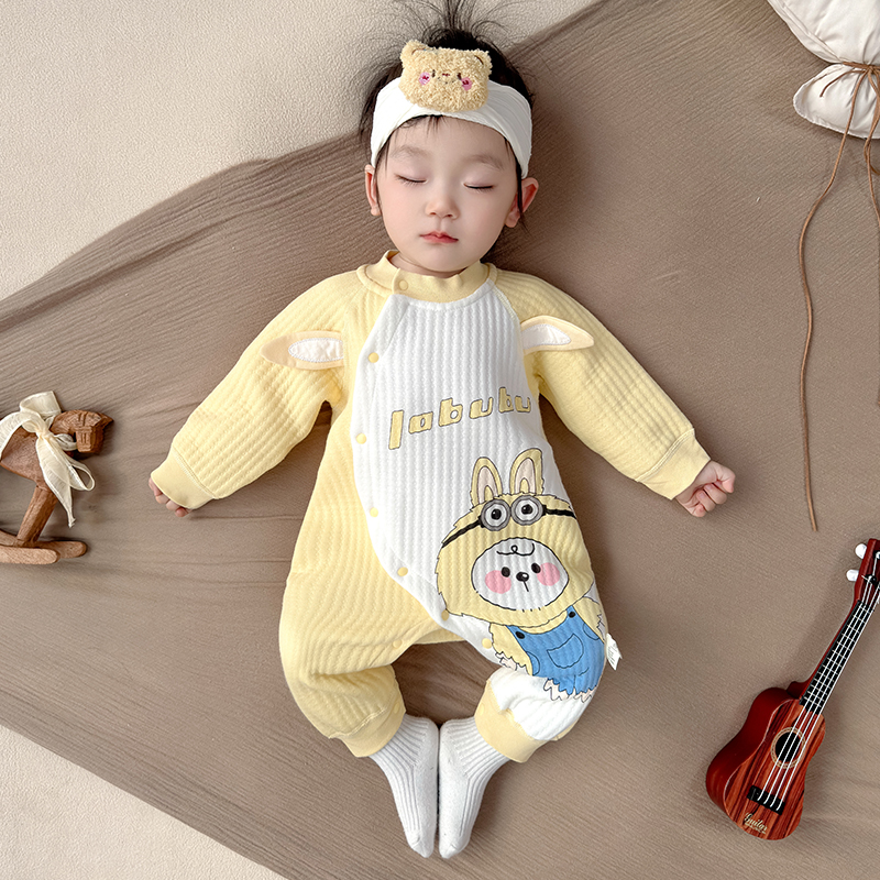 婴儿秋冬衣服宝宝春秋外出薄棉加厚保暖新生儿连体衣夹棉哈衣冬装