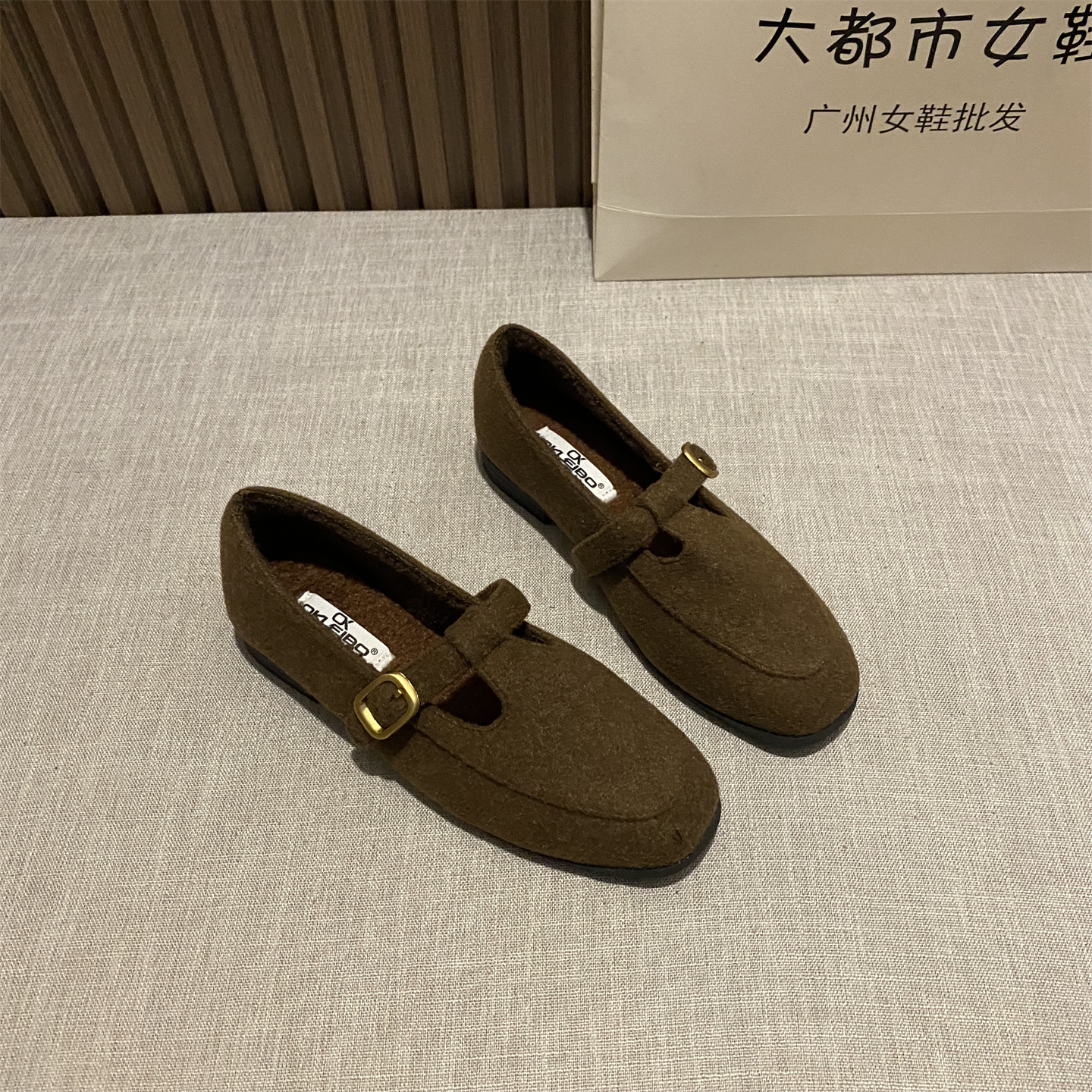 2025年秋冬新款法式配裙子气质低跟单鞋女T字带浅口加绒玛丽珍鞋
