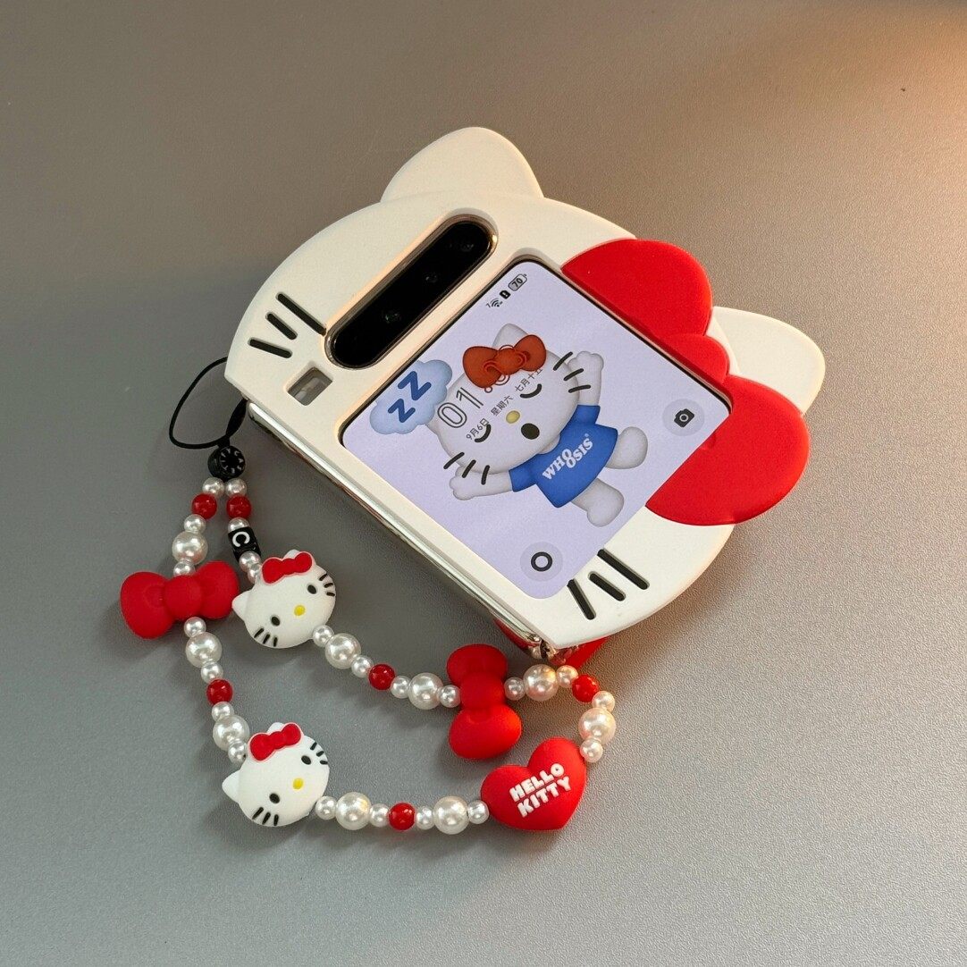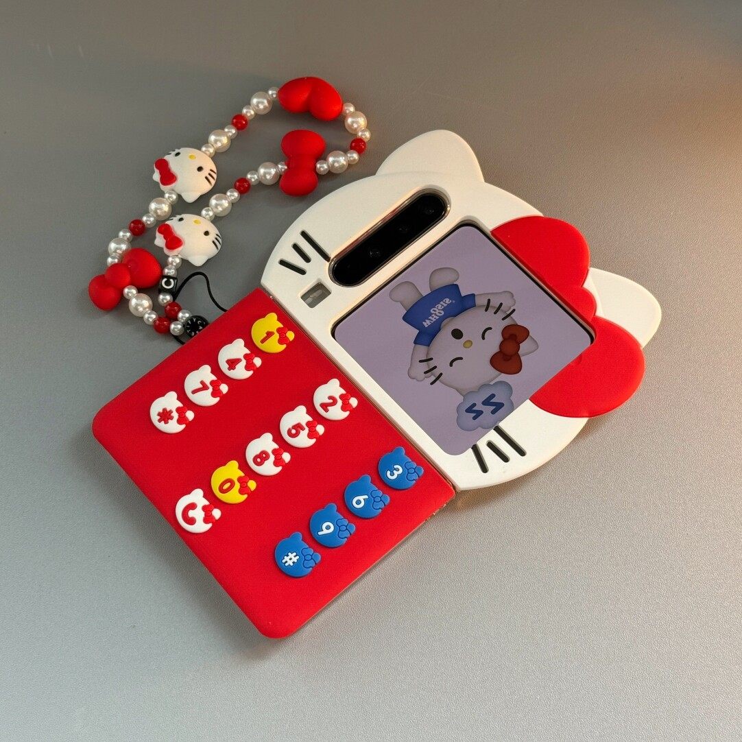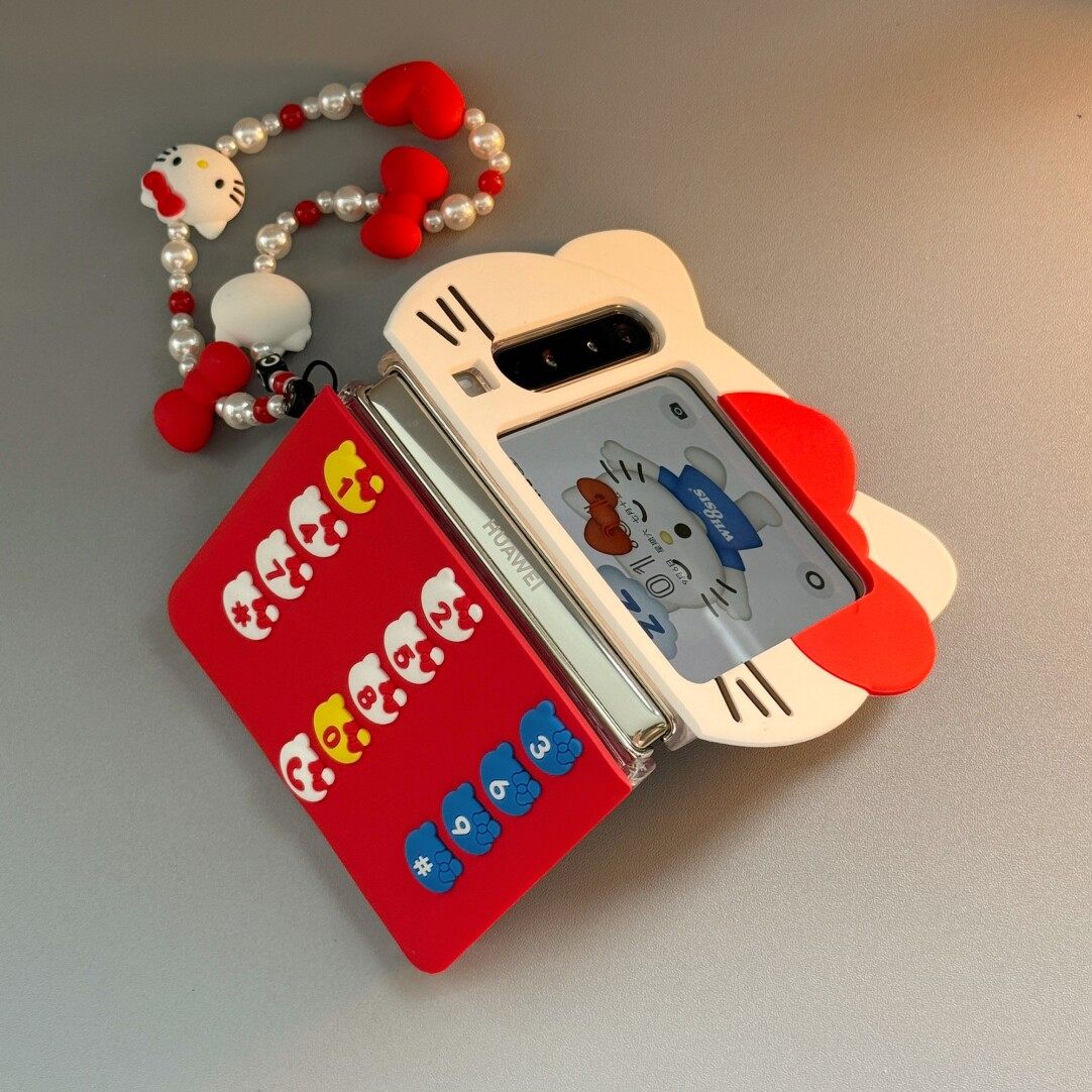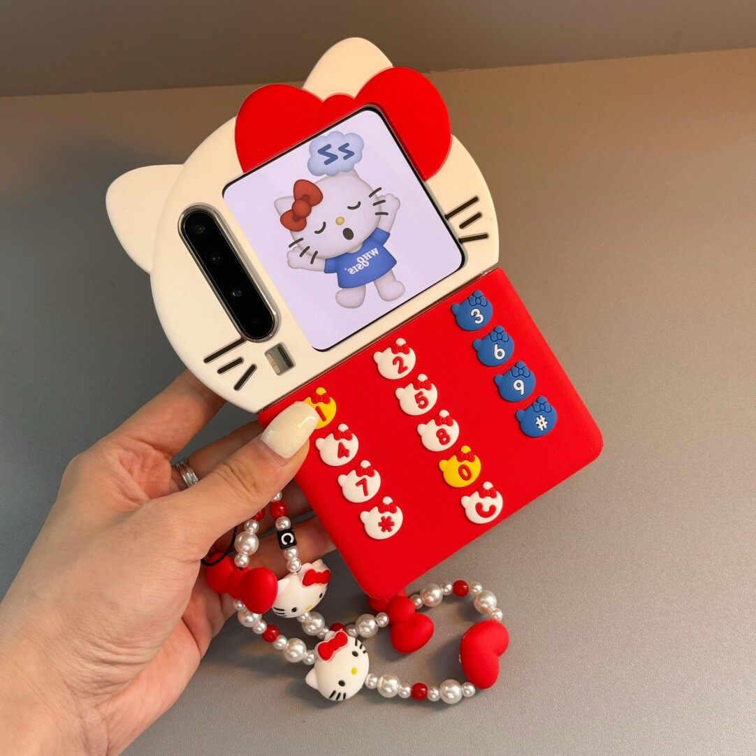 趣味可爱KT猫电话适用华为purax折叠屏手机壳p50女Pocket2小米mixflip2超火pura链条x典藏版s三星zflip7软6/5