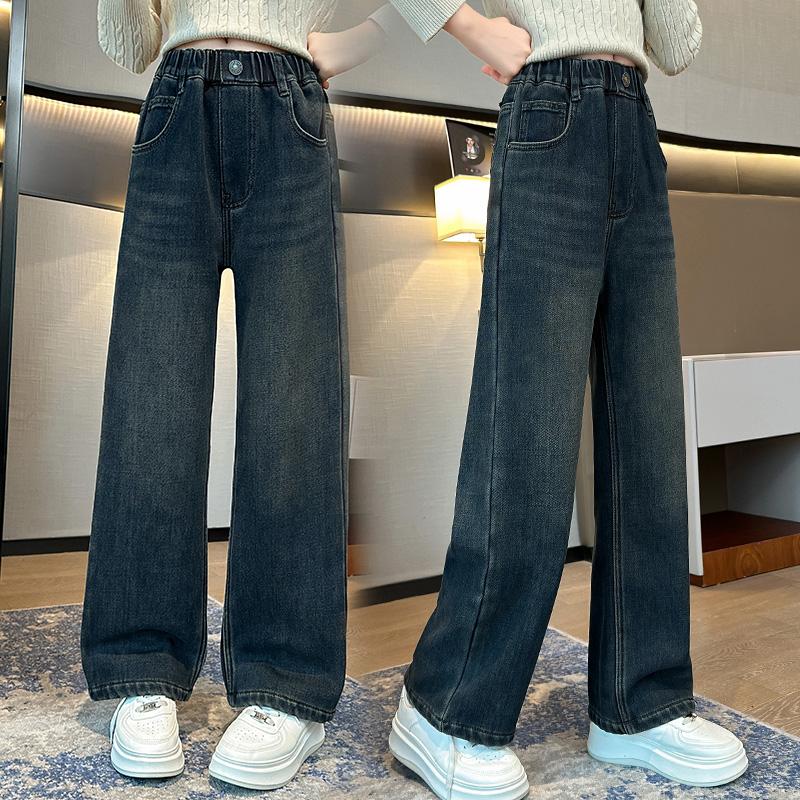 女童直筒阔腿牛仔裤春秋2025新款中大童秋装宽松儿童长裤女孩秋季