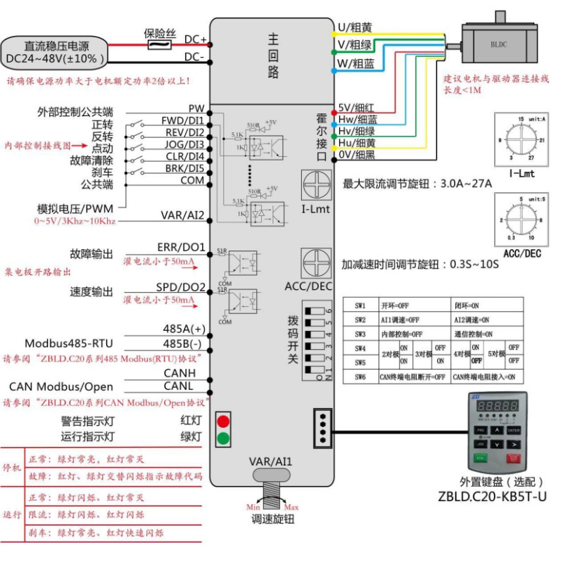ZD中大力德直流无刷24V48V驱动器无刷速度控制器220V调速器