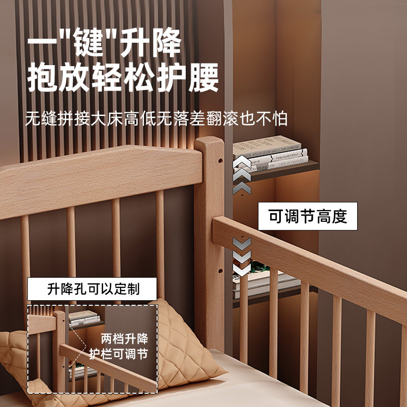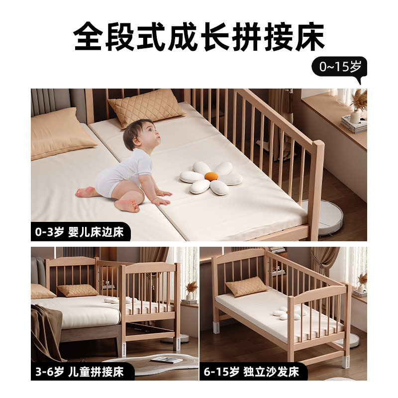 拼接床婴儿实木床边加宽大人可睡护栏升降榉木儿童床宝宝床平接床