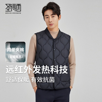 【发热&抗菌&抗静电】圣得西冬季新款男棒球领背心棉衣休闲马甲
