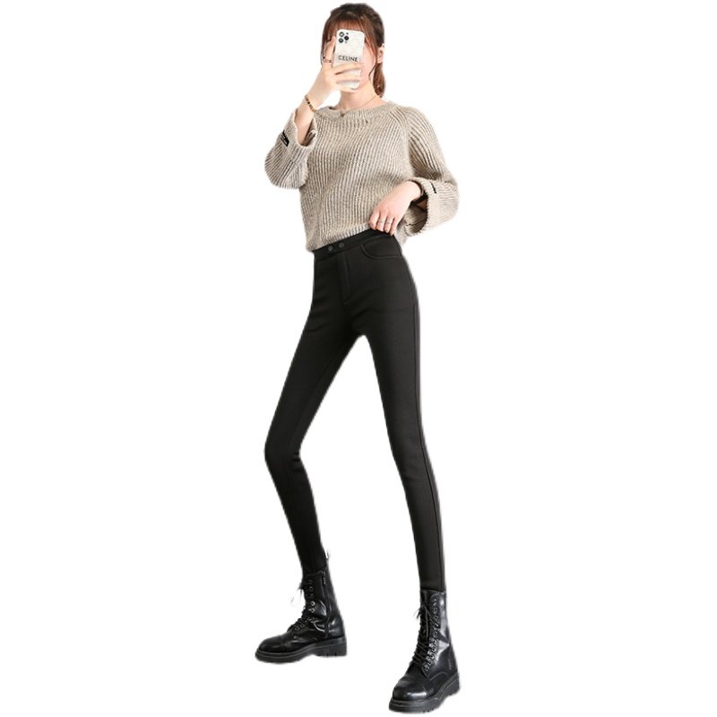 牛油果润肤裤子加绒加厚黑色打底裤女外穿冬弹力保暖显瘦紧身小脚