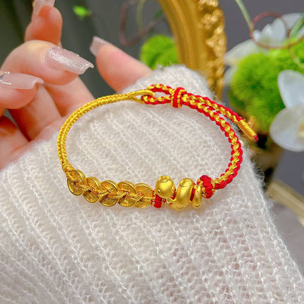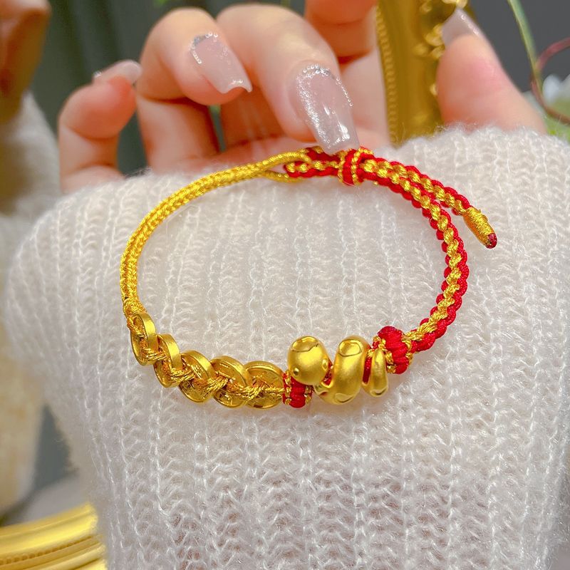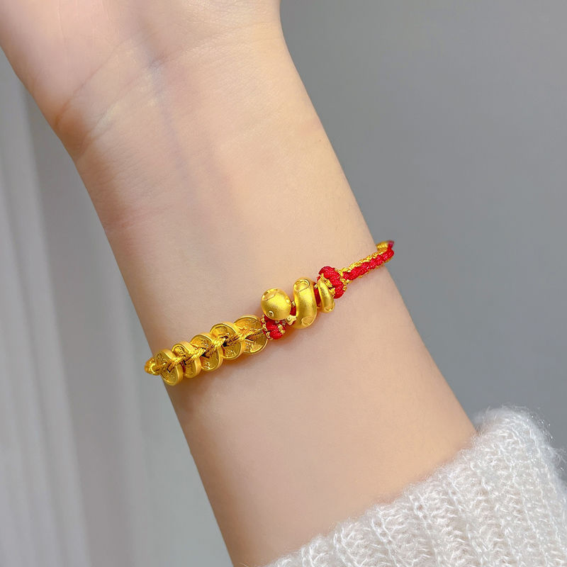 黄金色卷卷蛇铜钱手链新款五帝钱币蛇年本命年复古饰品礼物送女友