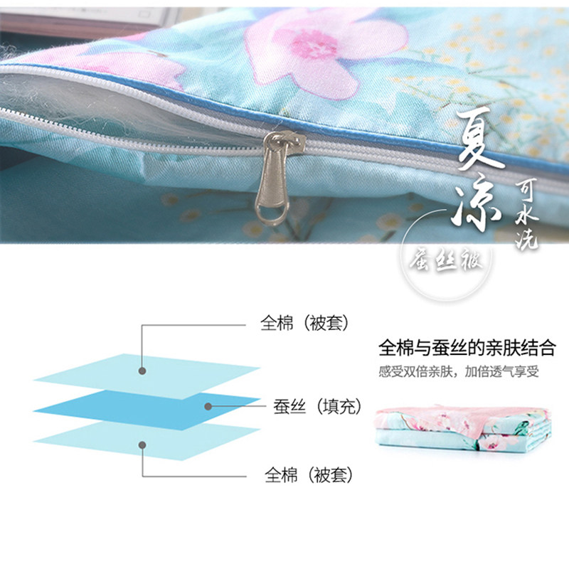 桑蚕丝被夏季单人纯棉可水洗
