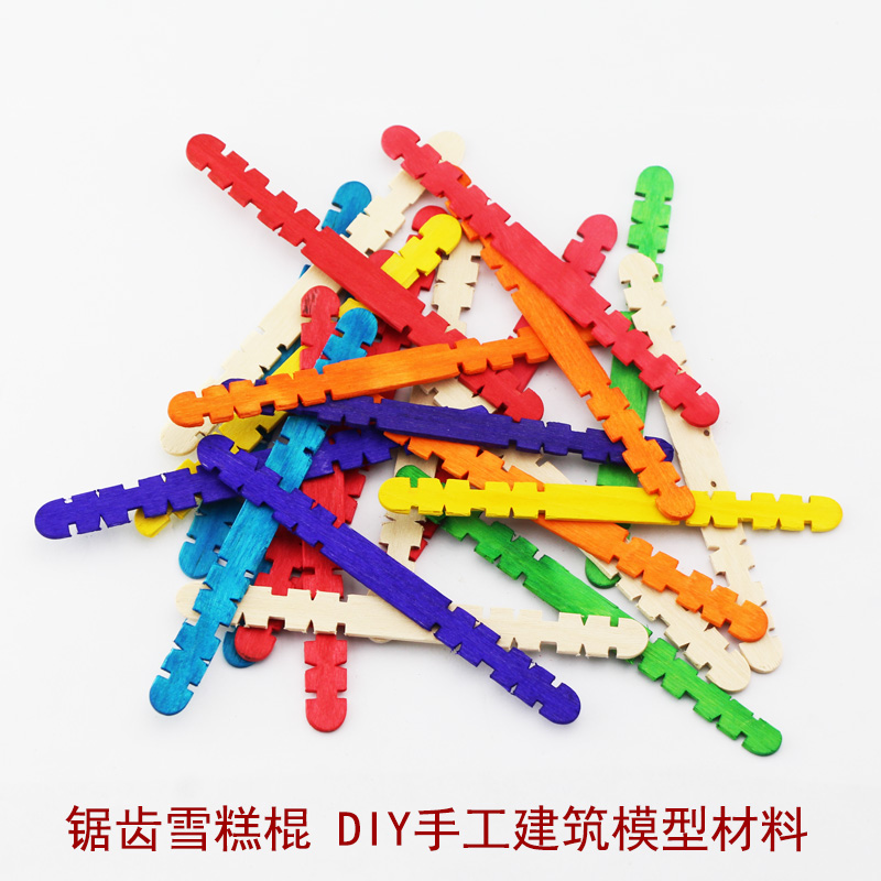 彩色锯齿DIY手工木板 拼装模型材料木条棒 雪糕棒 带齿冰棍雪糕板