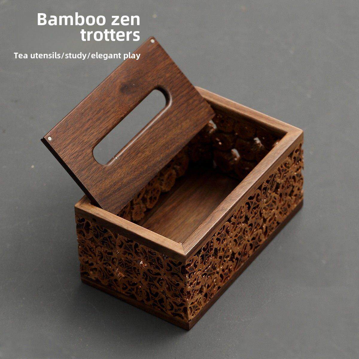 竹禅迹|核桃纸巾盒 家用中式卧室胡桃木客厅餐厅茶几卷纸筒抽纸盒