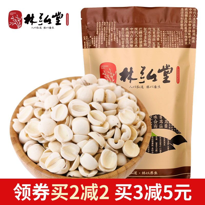林弘堂 半边白莲子干货去芯500g 湖南湘潭特产无芯磨皮开边湘莲