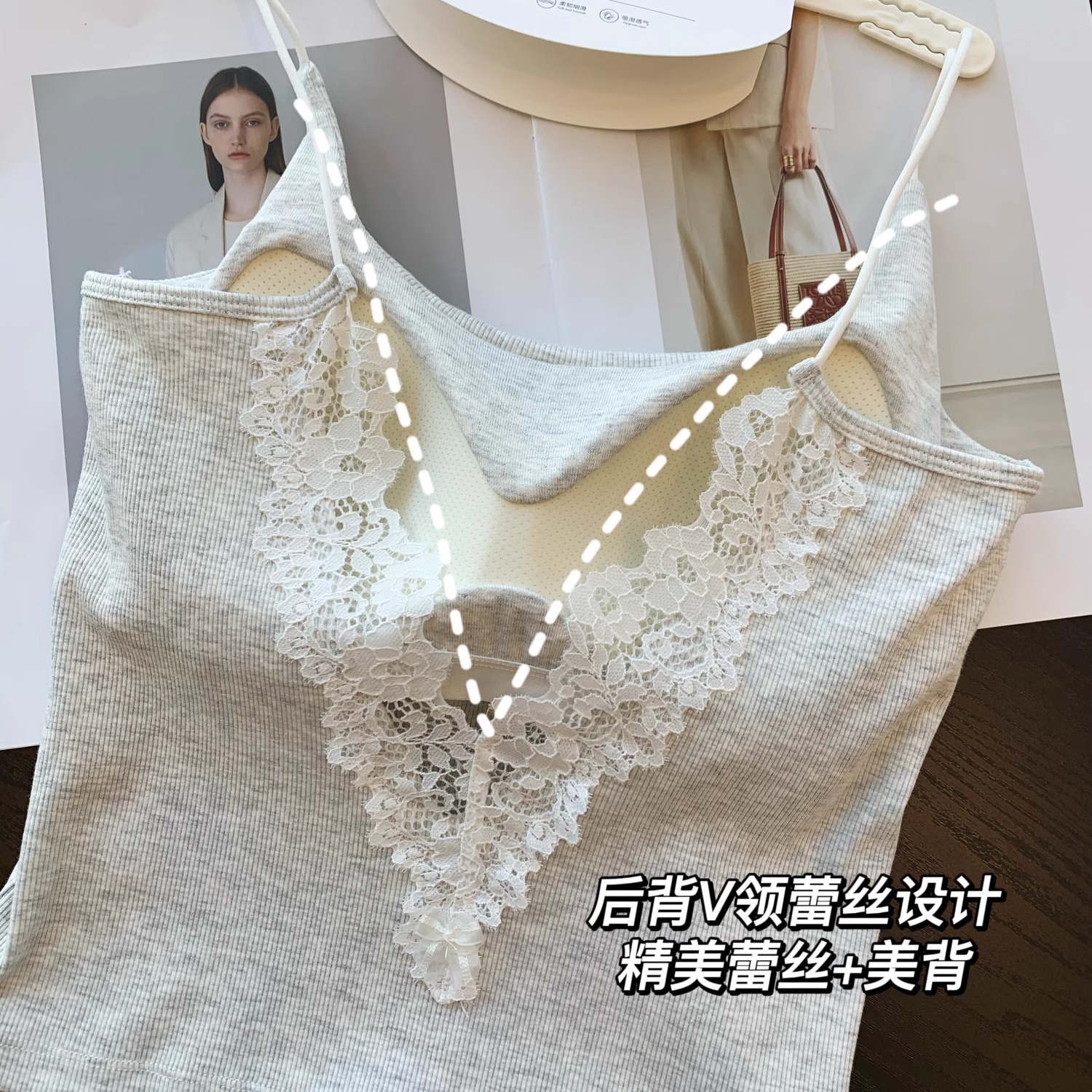 性感美背V领蕾丝!后背深V蕾丝打底背心吊带文胸内衣女新款