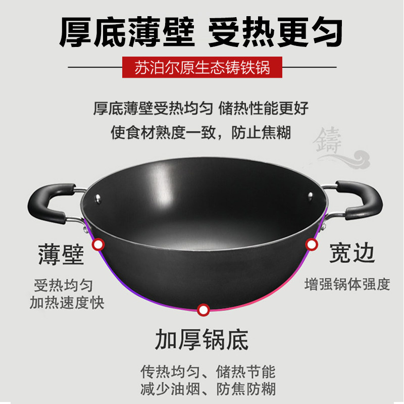 苏泊尔双耳大铁锅炒锅不粘家用老式铸铁锅无涂层电磁炉专用炒菜锅