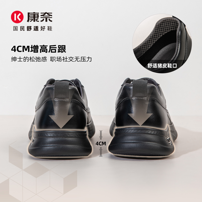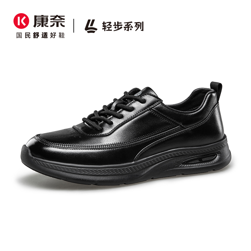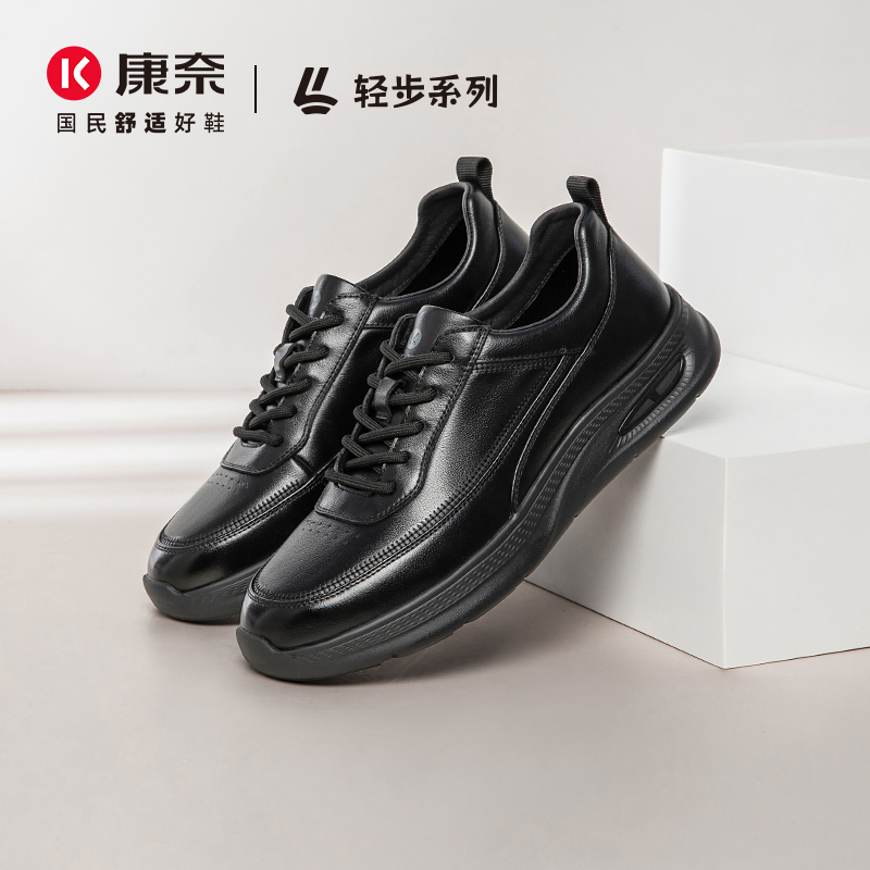 康奈男鞋2025新款秋季百搭休闲皮鞋男软底舒适运动户外健步鞋黑色