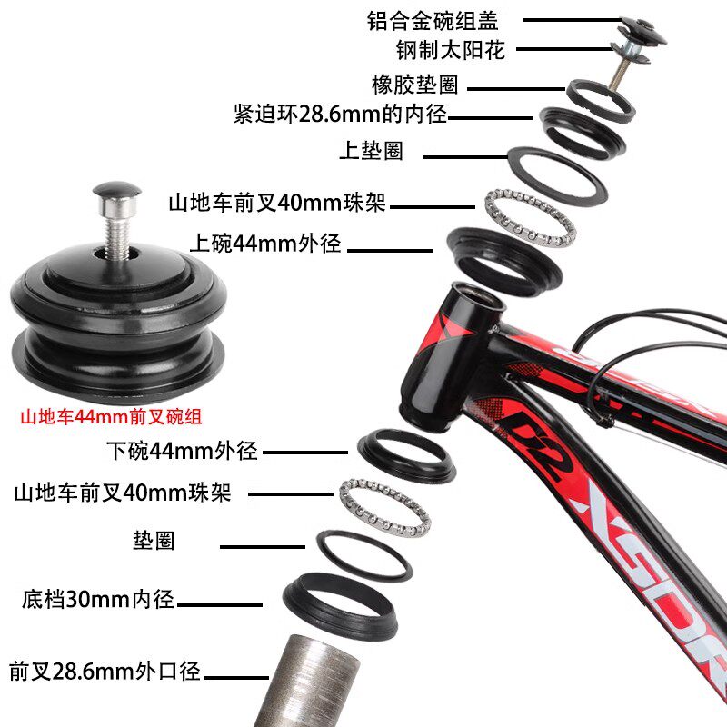 山地自行车碗组车头前叉轴承配件山地死飞自行车车头滚珠碗组44mm