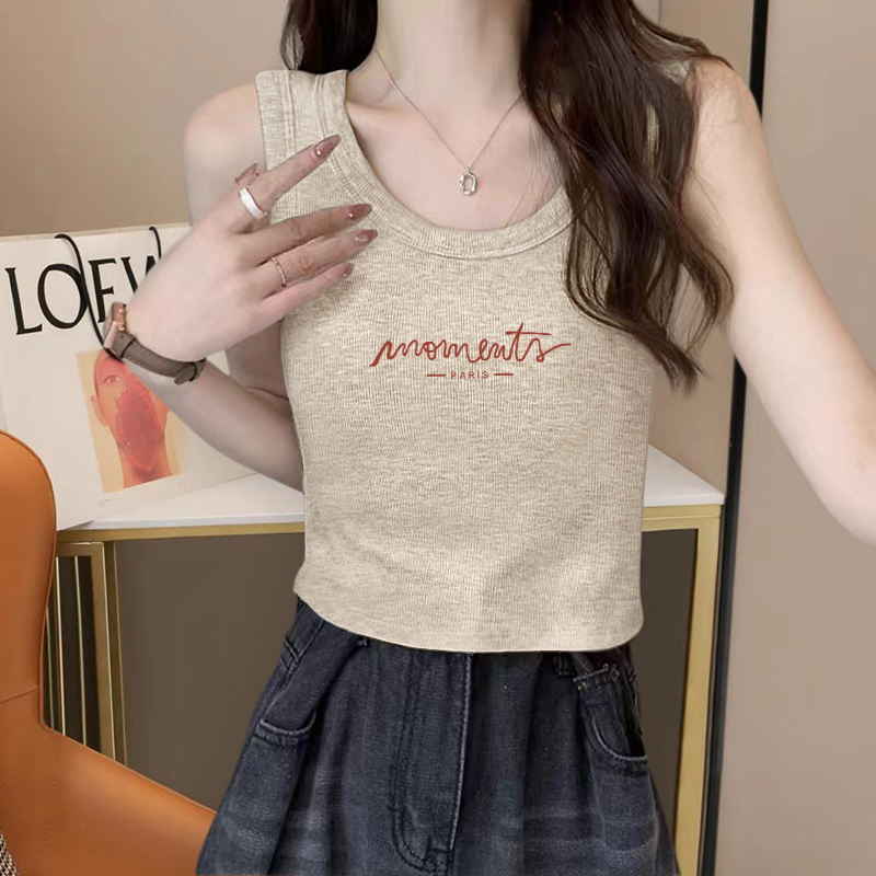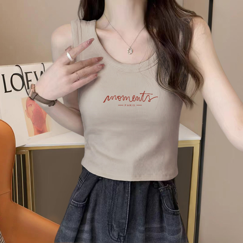 夏季背心女修身无袖内搭宽肩吊带外穿百搭短款白色纯棉打底t恤