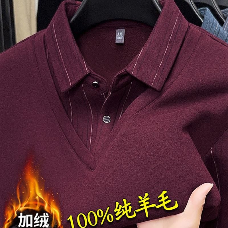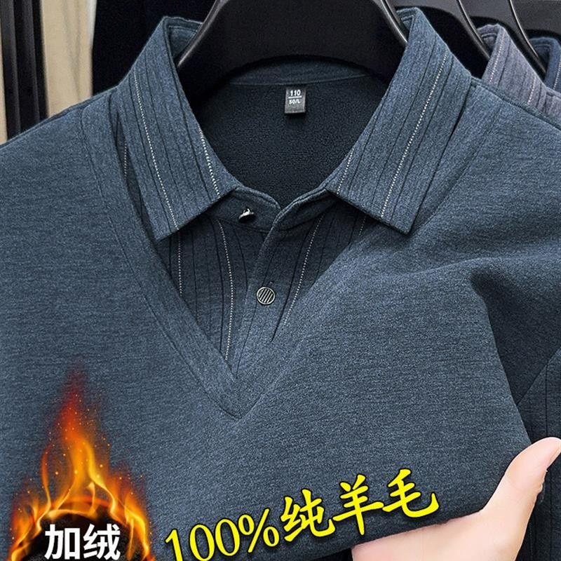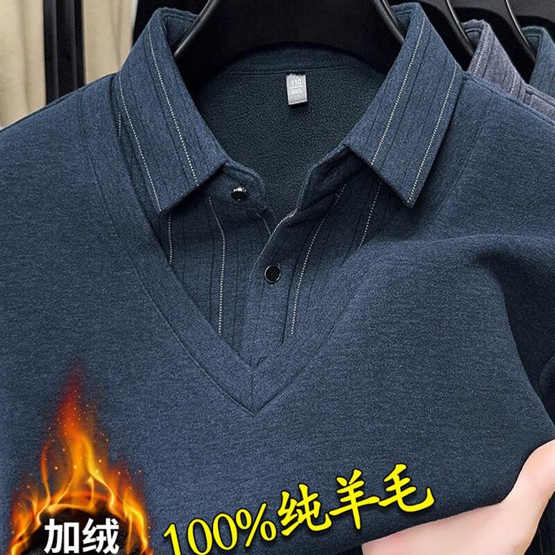恒源祥羊毛衫假两件衬衫领毛衣男士加绒加厚保暖一体绒新款爸爸装