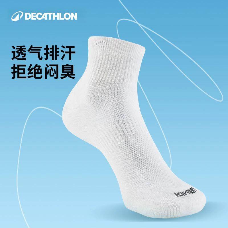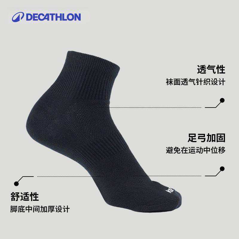 迪卡侬跑步袜男袜吸汗透气速干中筒薄款袜子运动袜短袜3双装OVA1