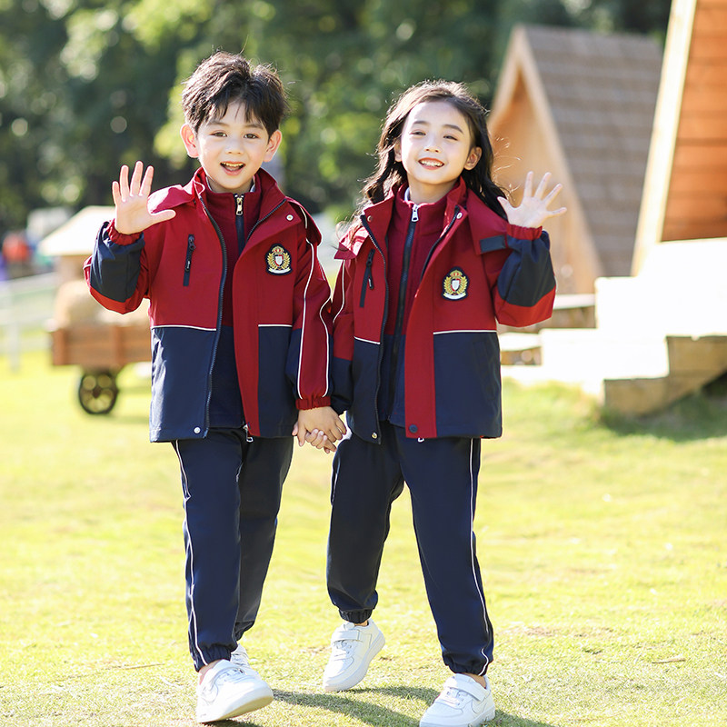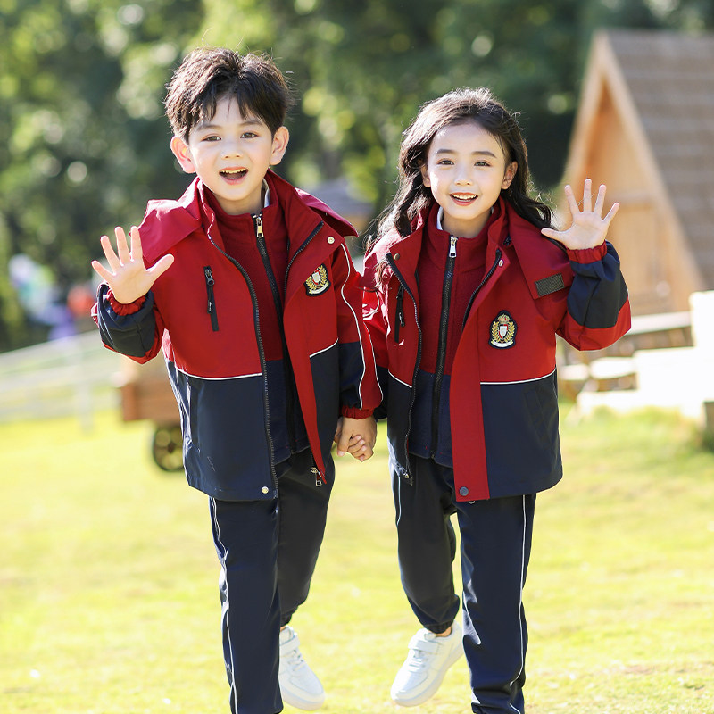 儿童冲锋衣三合一男童幼儿园园服小学生校服一年级班服套装秋冬装