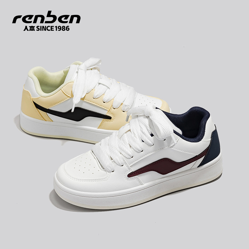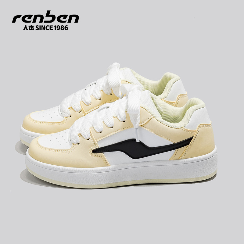 人本板鞋女2025春秋新款百搭休闲运动轻便小众设计低帮闪电小白鞋