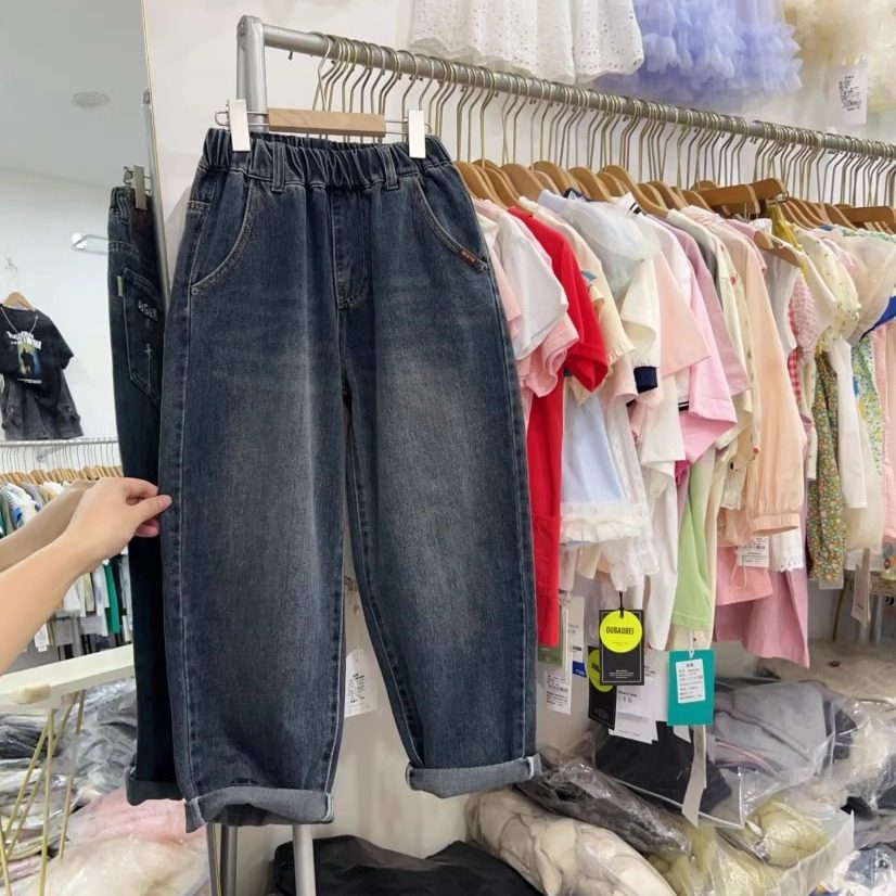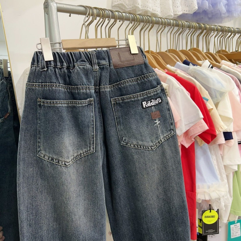 小首尔男大童牛仔裤春秋款青少年秋季裤子宽松潮酷男孩休闲老爹裤