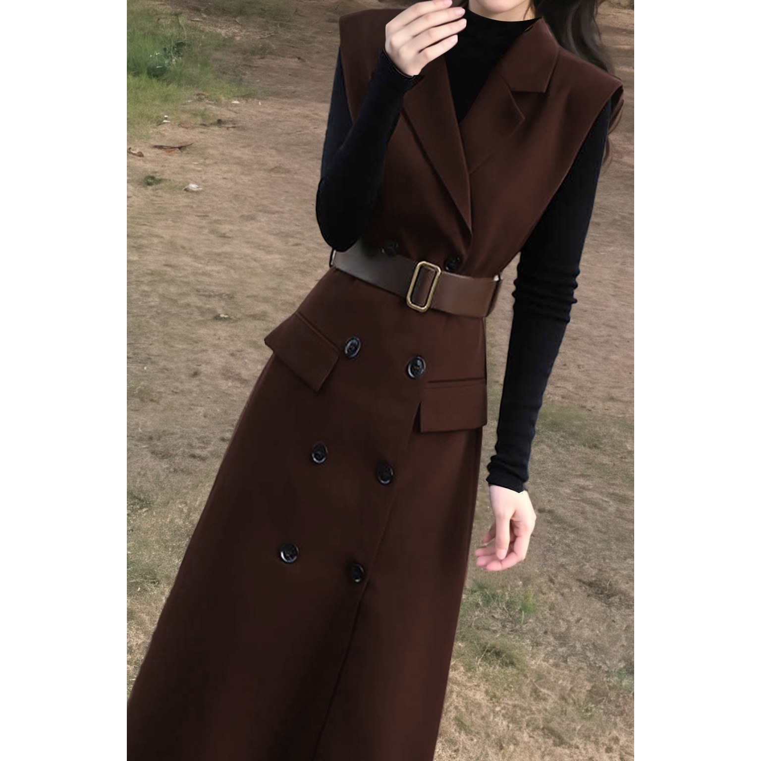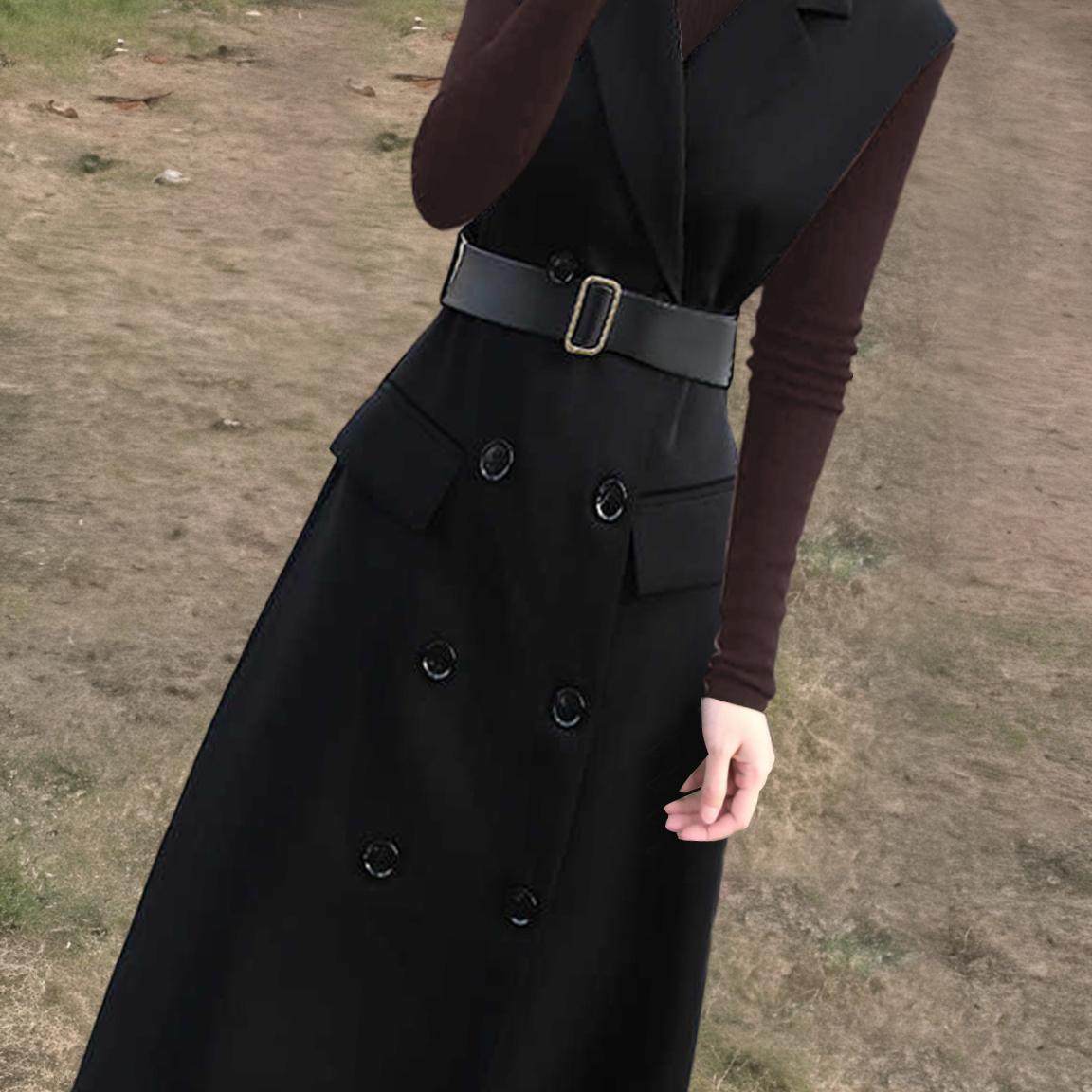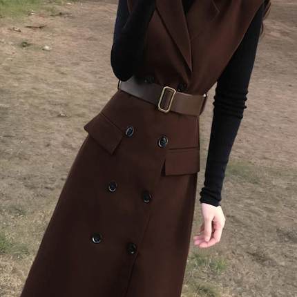 两件套2026春季新款双排扣西装马甲连衣裙高级感气质通勤套装2119