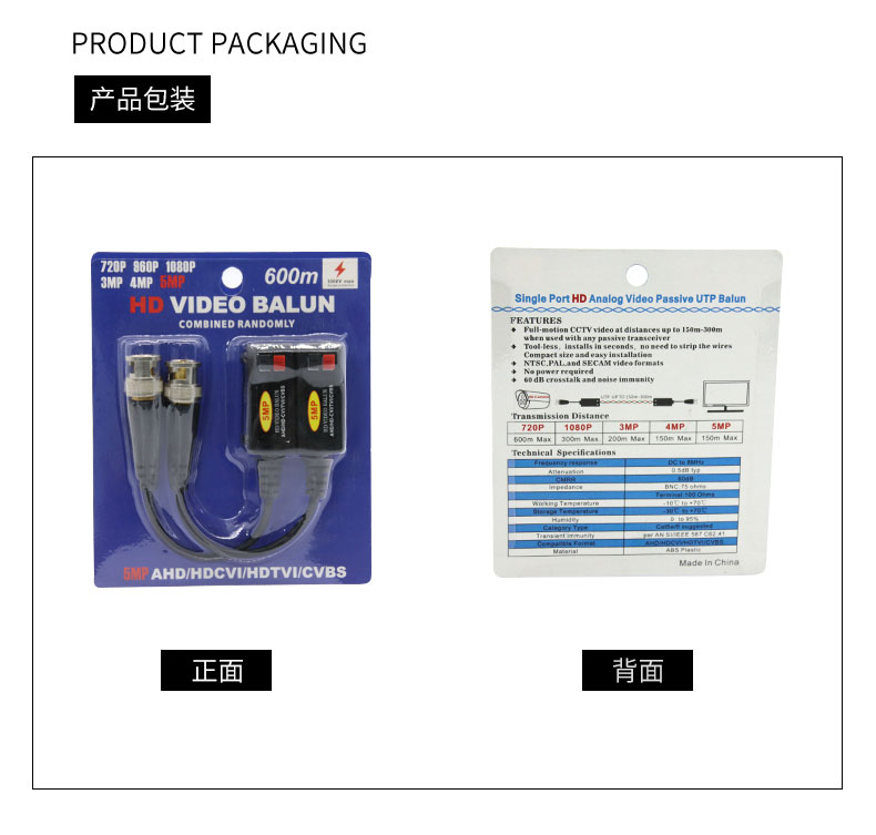 监控同轴高清模拟摄像机双绞线传输器AHD海康TVI大华CVIBNC转接头