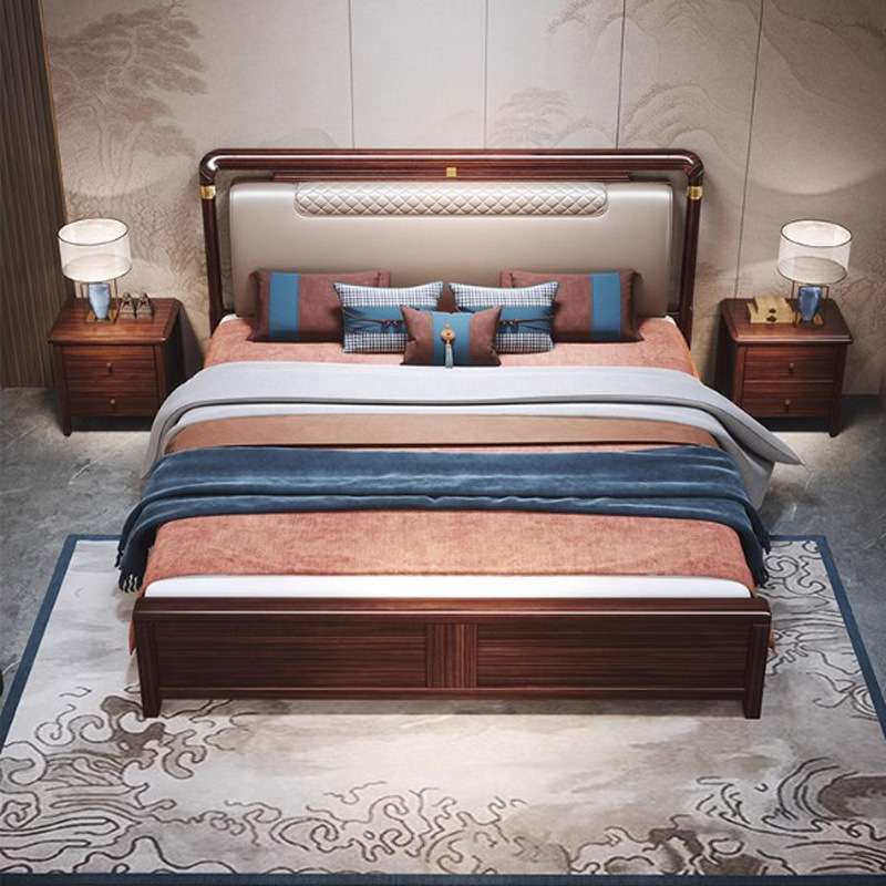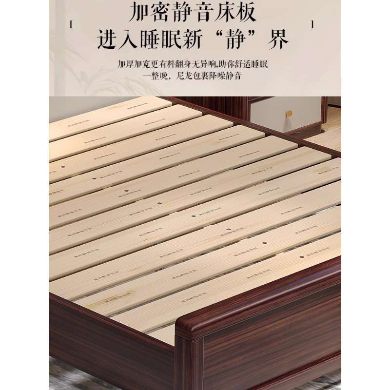 乌金木实木床新中式现代轻奢带软靠1.5米1.8米单双人床高箱储物床