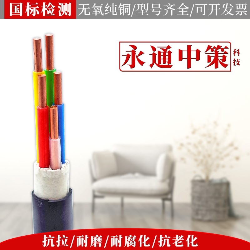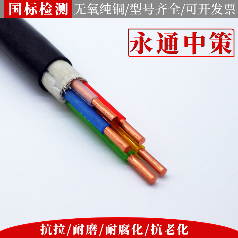 永通中策国标纯铜芯2 3 4 5芯 2.5 4 6平方户外yjv电缆线阻燃