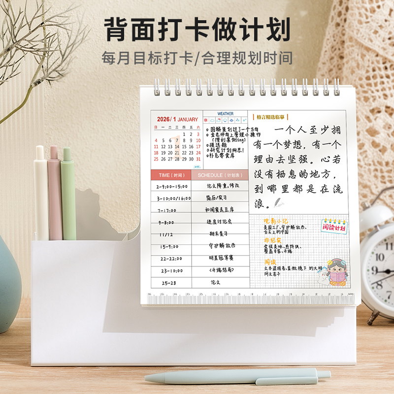 2026年台历笔筒日历多功能便签记事本工作自律打卡大格子月历高颜值办公室桌面创意摆件黄历马年历定制logo