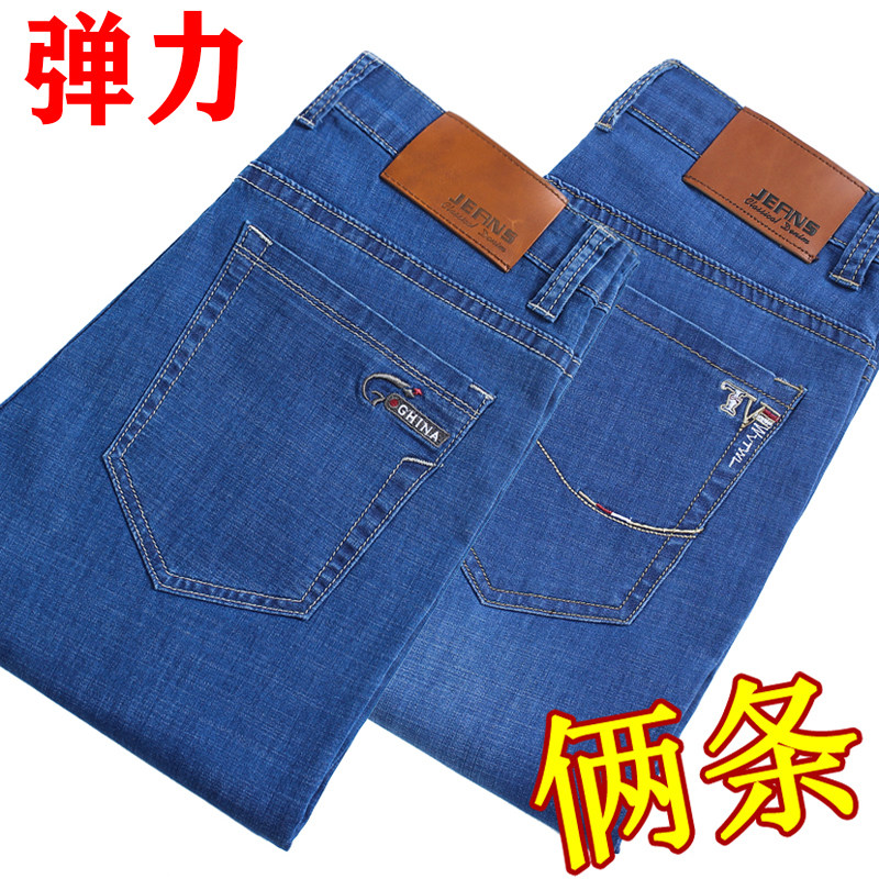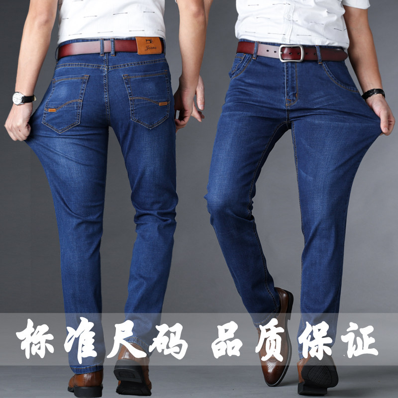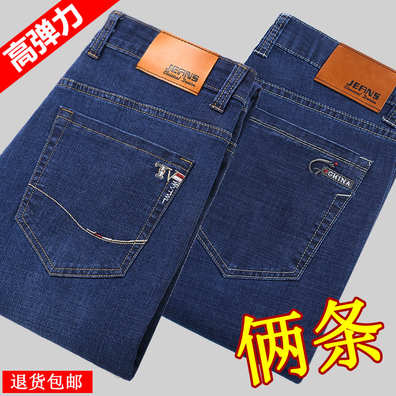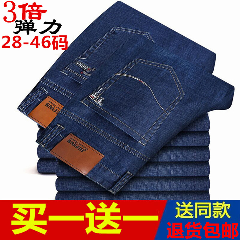 高弹力直筒大码牛仔裤男士宽松高腰秋季加肥加大爸爸胖子中年长裤