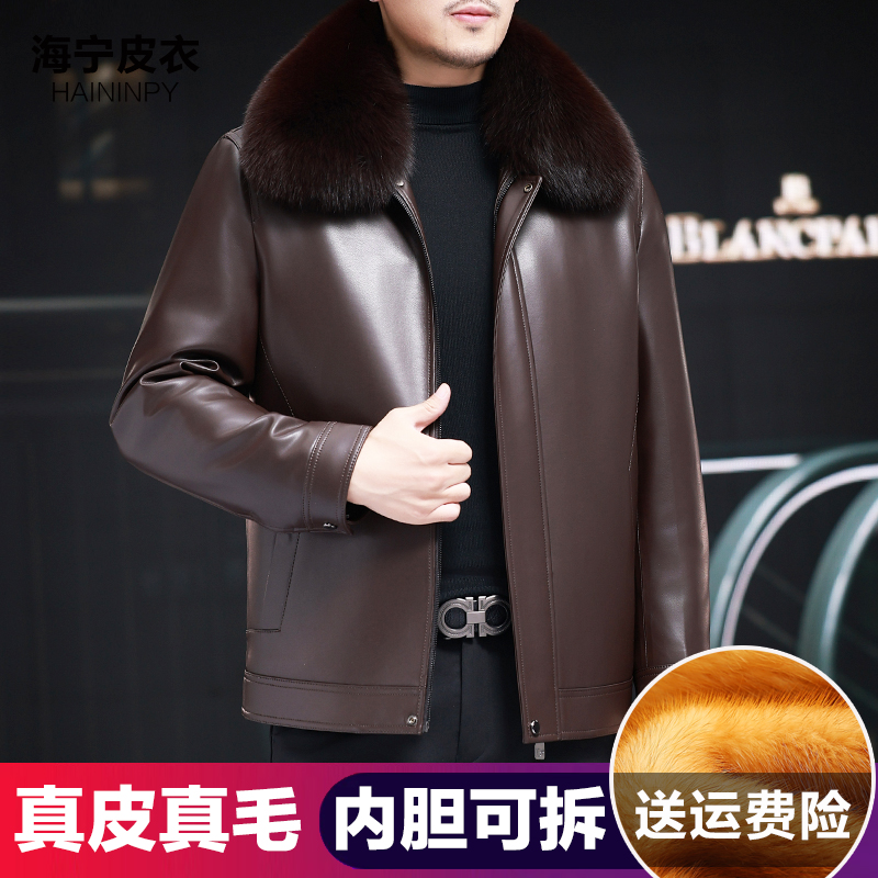 中老年皮衣男爸爸装海宁皮草冬季男士加绒加厚毛领外套真皮皮夹克