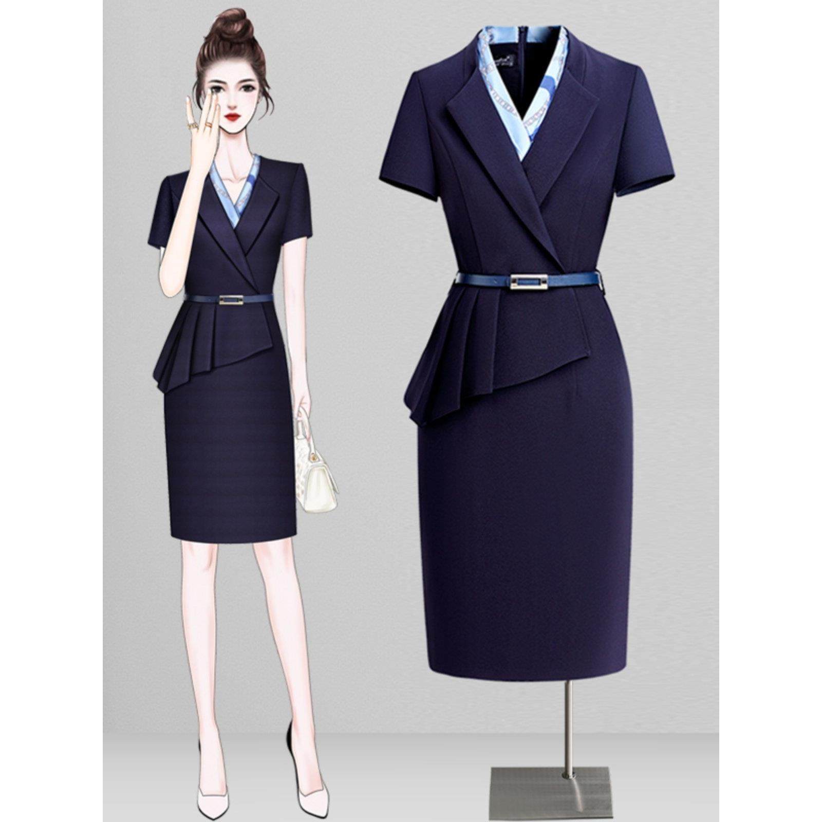 职业连衣裙女春秋气质干练商场导购前台工装售楼部案场客服工作服