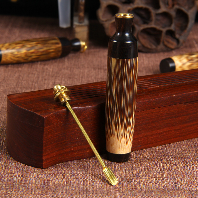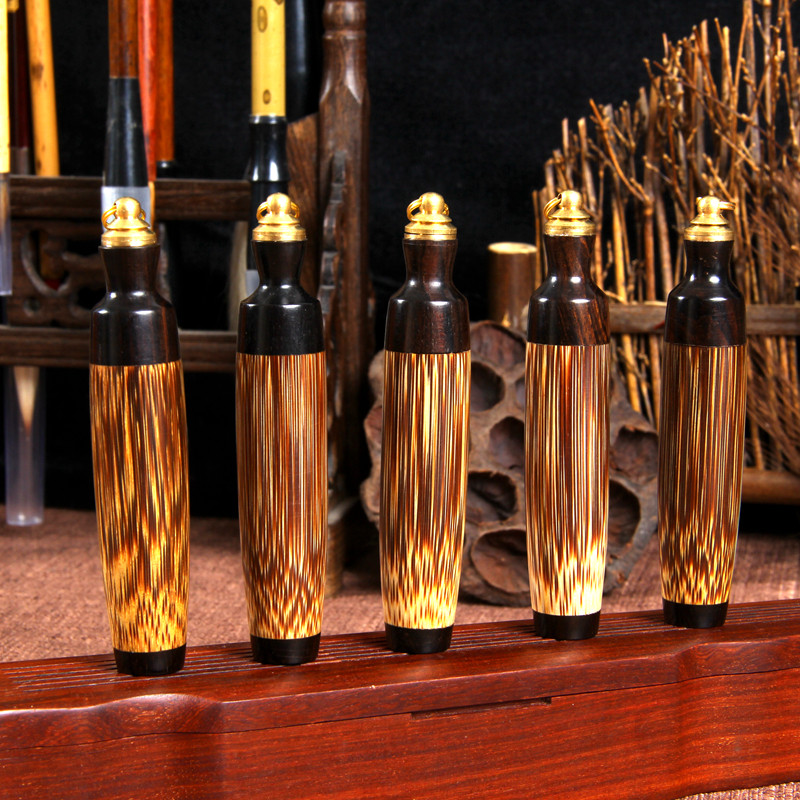 新款紫光檀镶金丝竹鼻烟壶木制烟壶竹木鼻烟壶中国风特色礼品