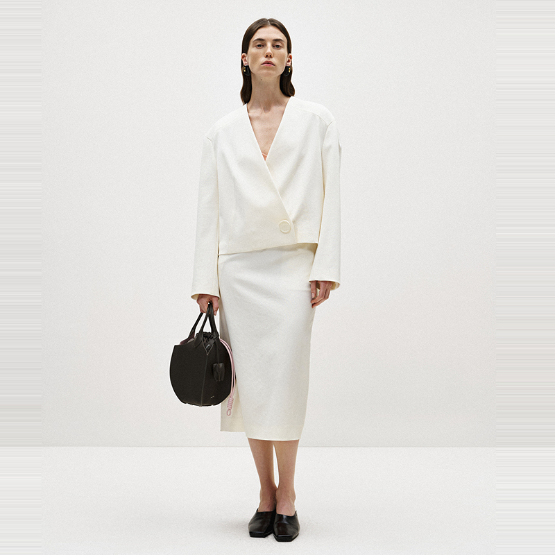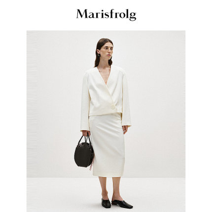 【精简美学】玛丝菲尔春季象牙白气质开衩A字直筒半身裙