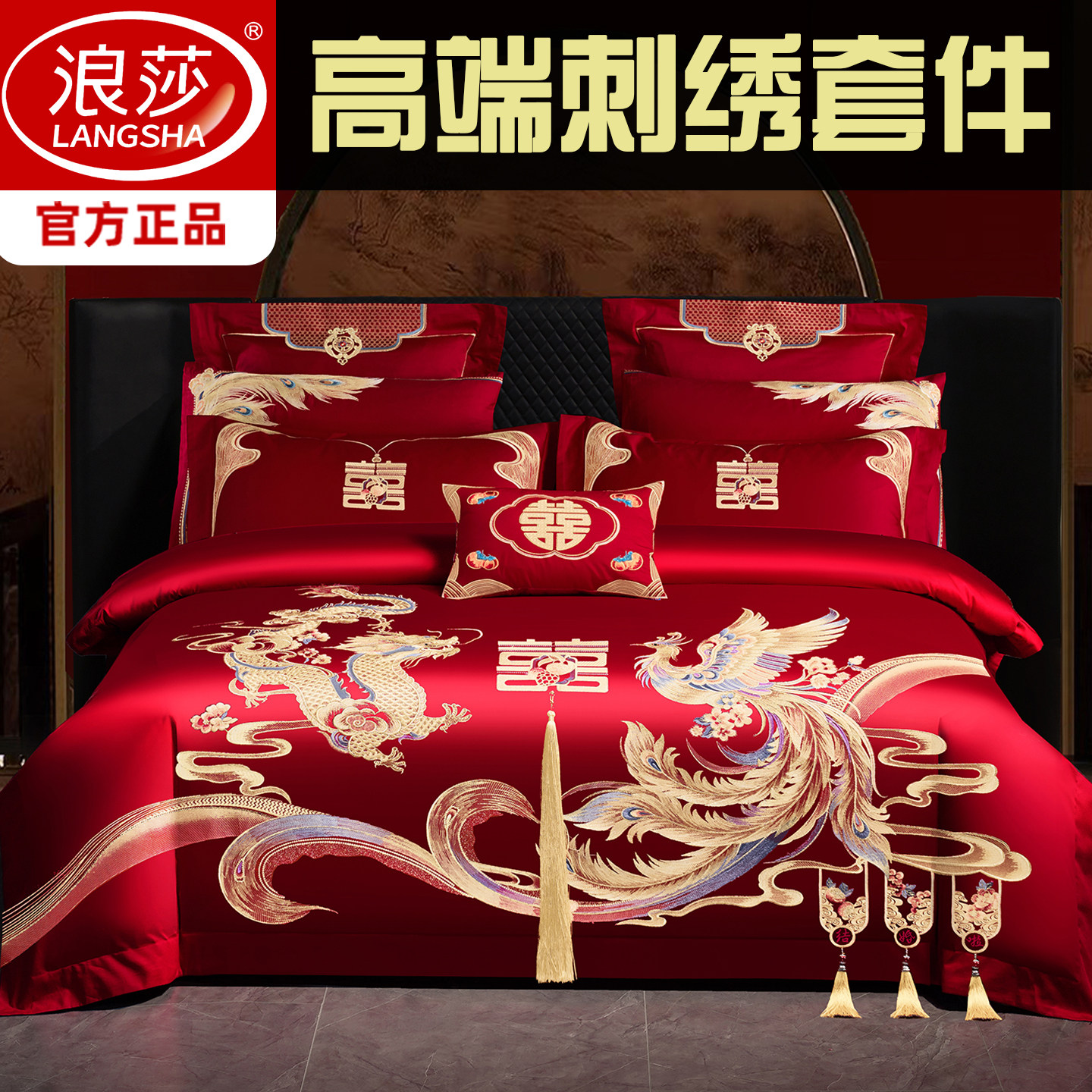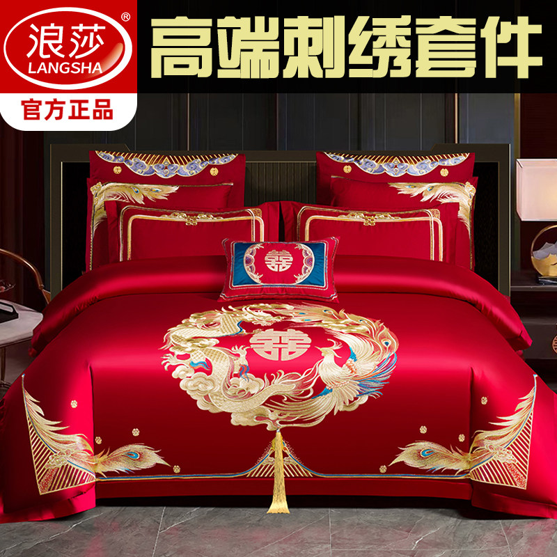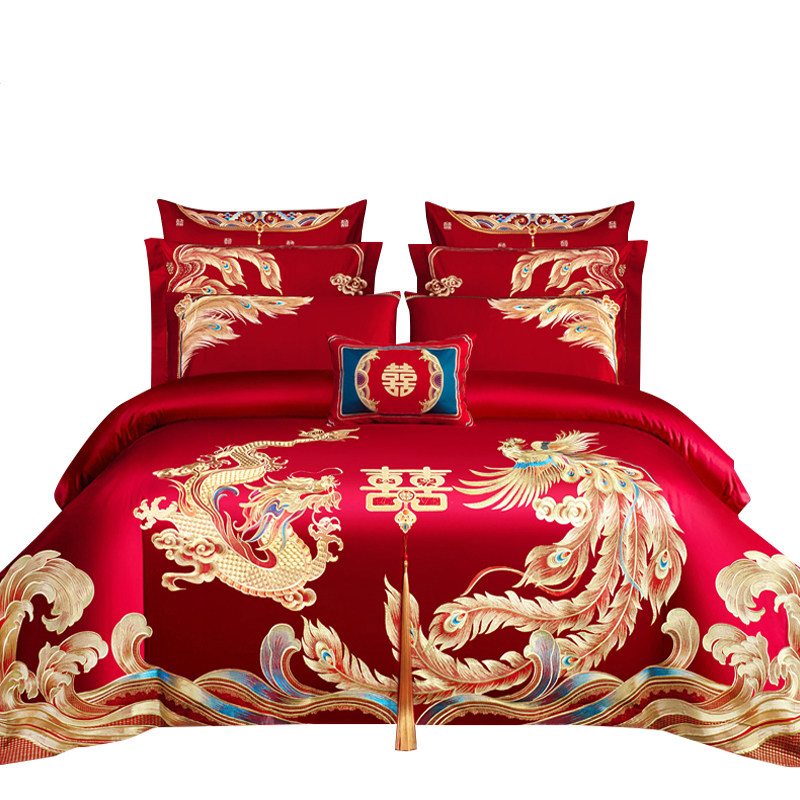 婚庆四件套大红龙凤刺绣新婚六八十件套结婚喜庆套件婚嫁床上用品
