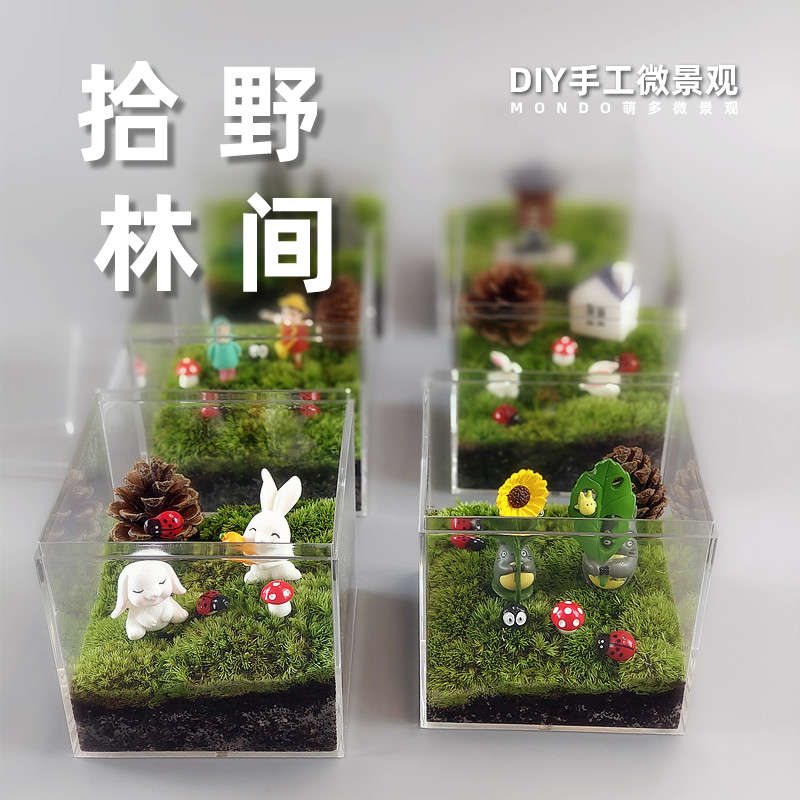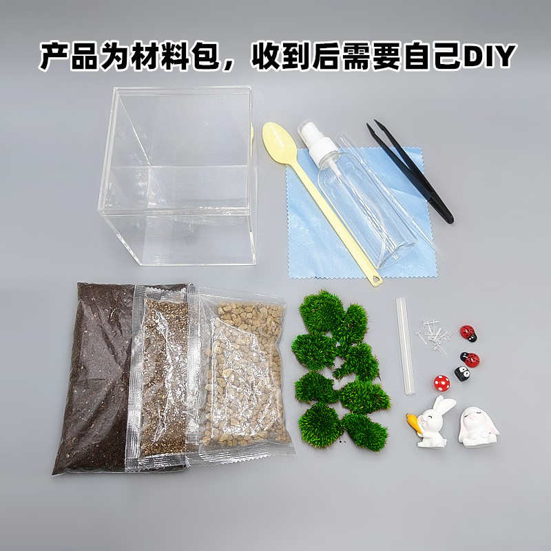 包邮亲子老年简易手工diy活动物料纯苔藓植物微景观透明盒材料包