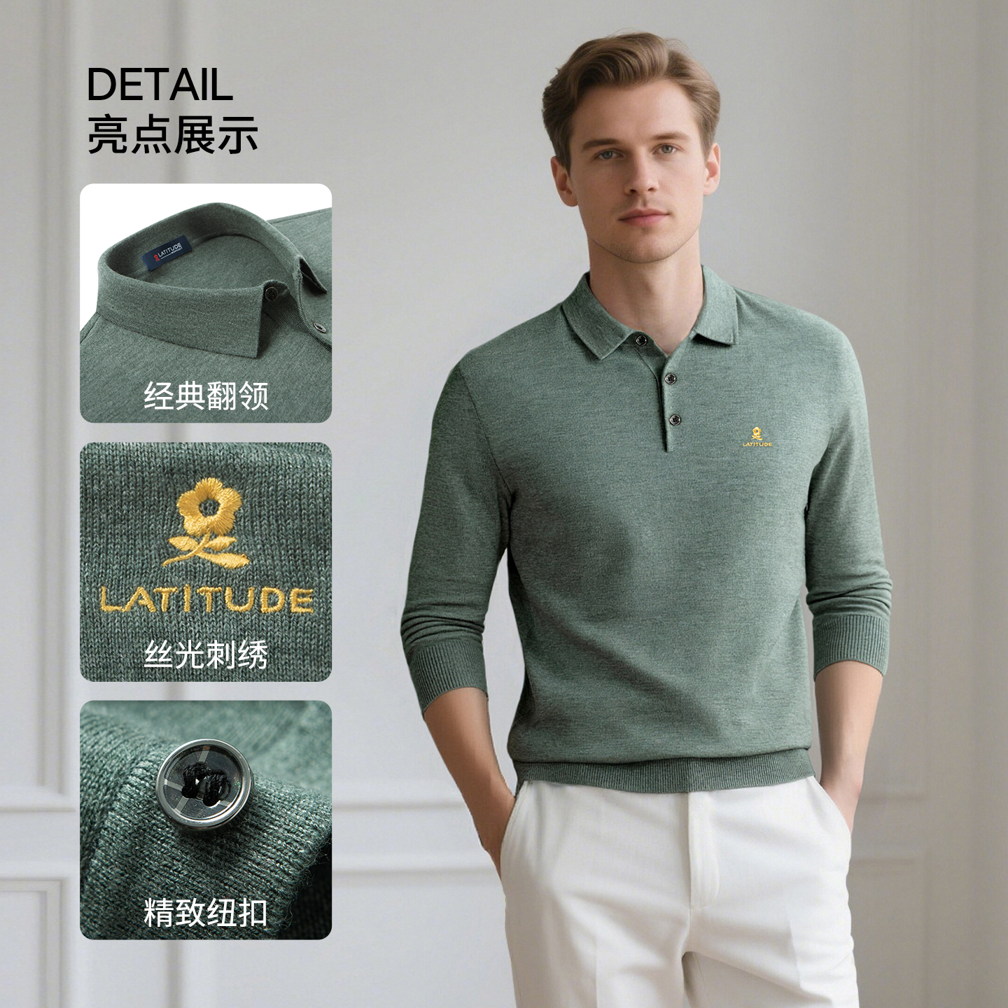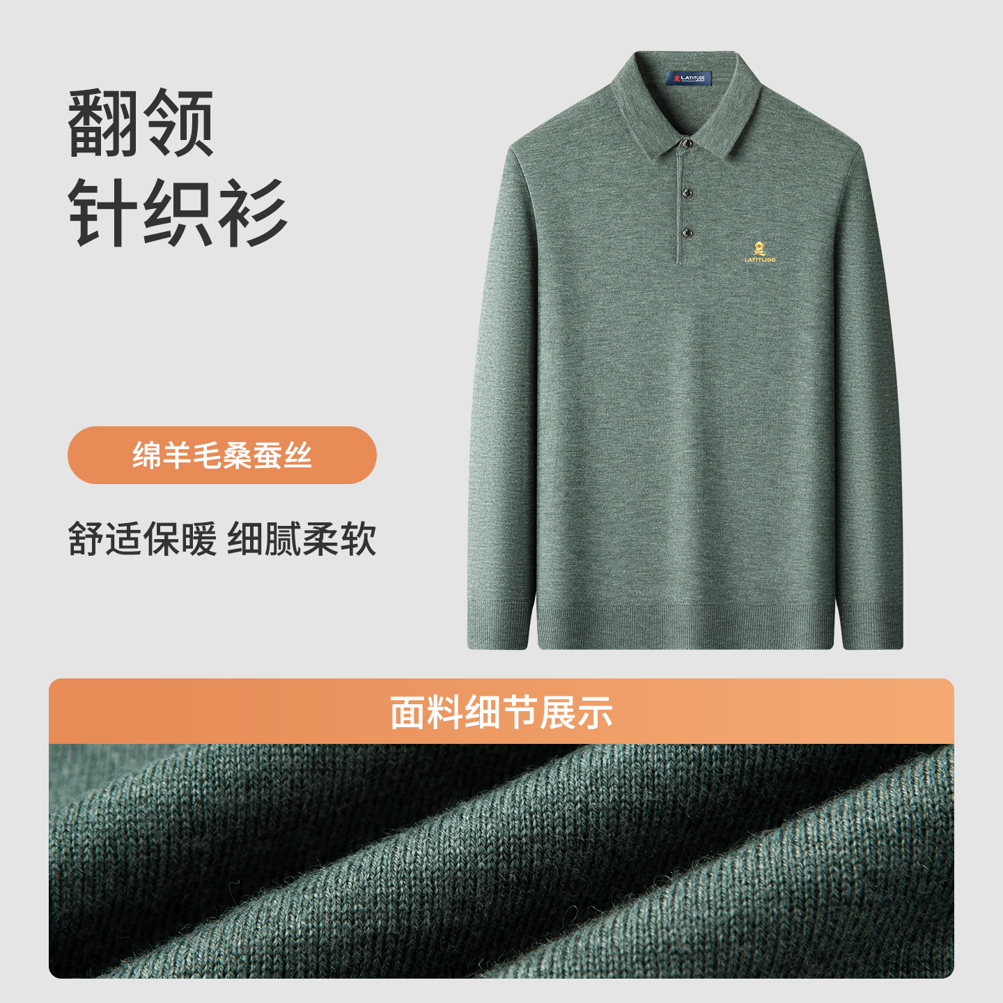 [蚕丝羊毛]梦特娇秋冬男士纯色羊毛衫翻领打底针织柔软毛衣保暖J