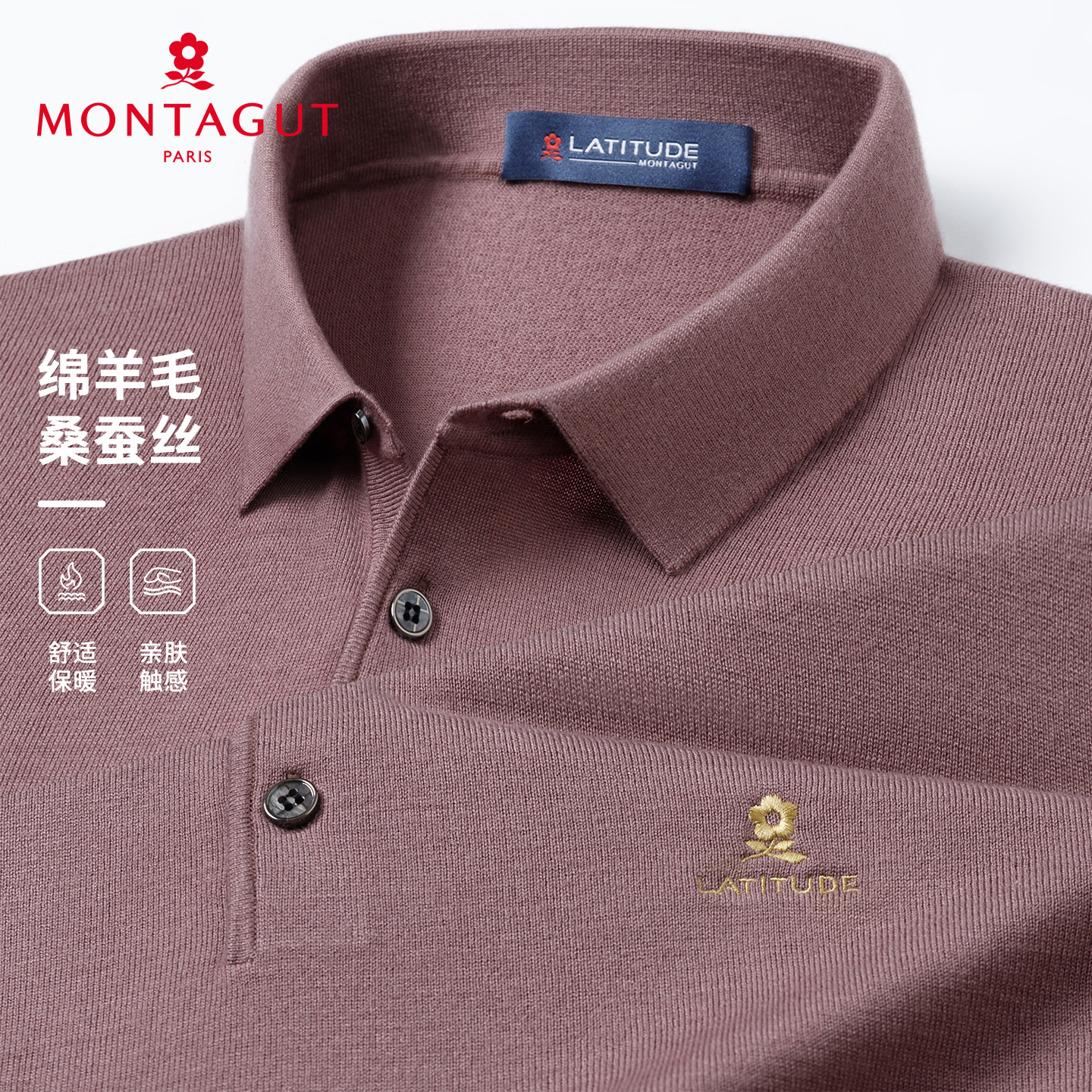 梦特娇纯色羊毛桑蚕丝针织Polo衫