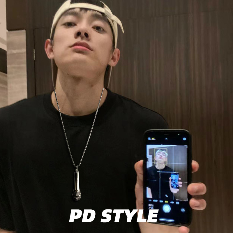 PDSTYLE 「支持刻字」仿真麦克风项链钛钢男女生创意音乐话筒礼物