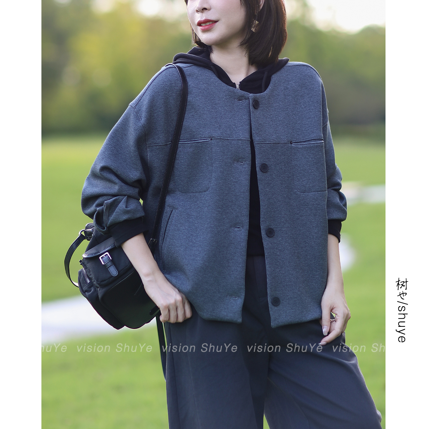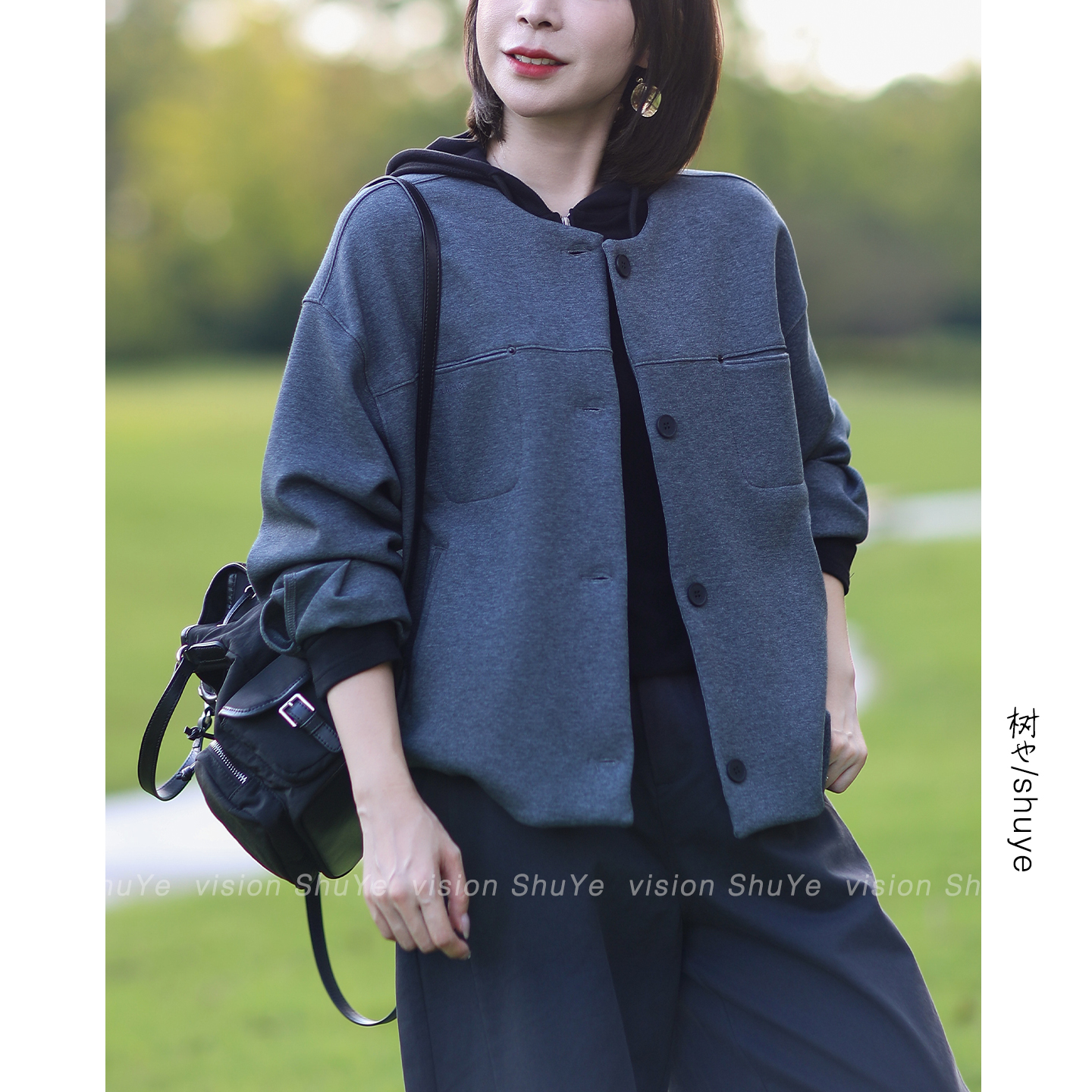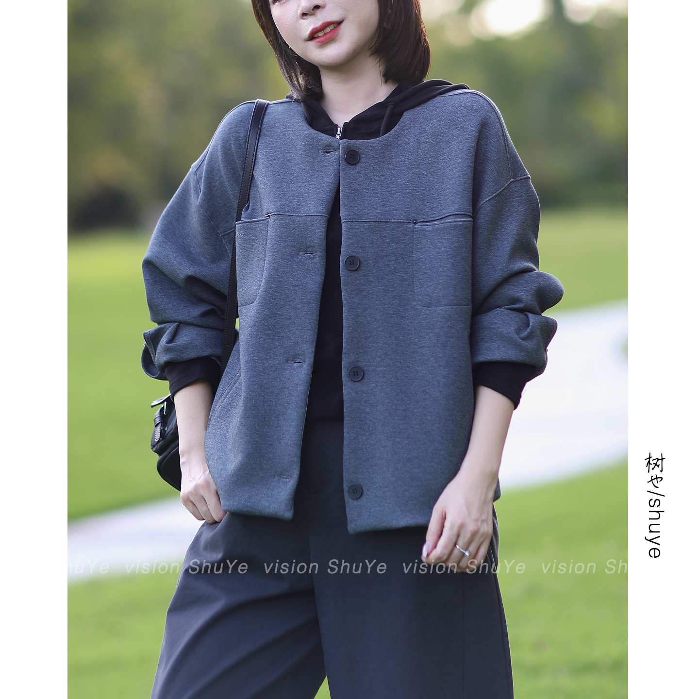 树也 简约原创款 洋气减龄圆领棒球服女韩版休闲宽松卫衣外套2025
