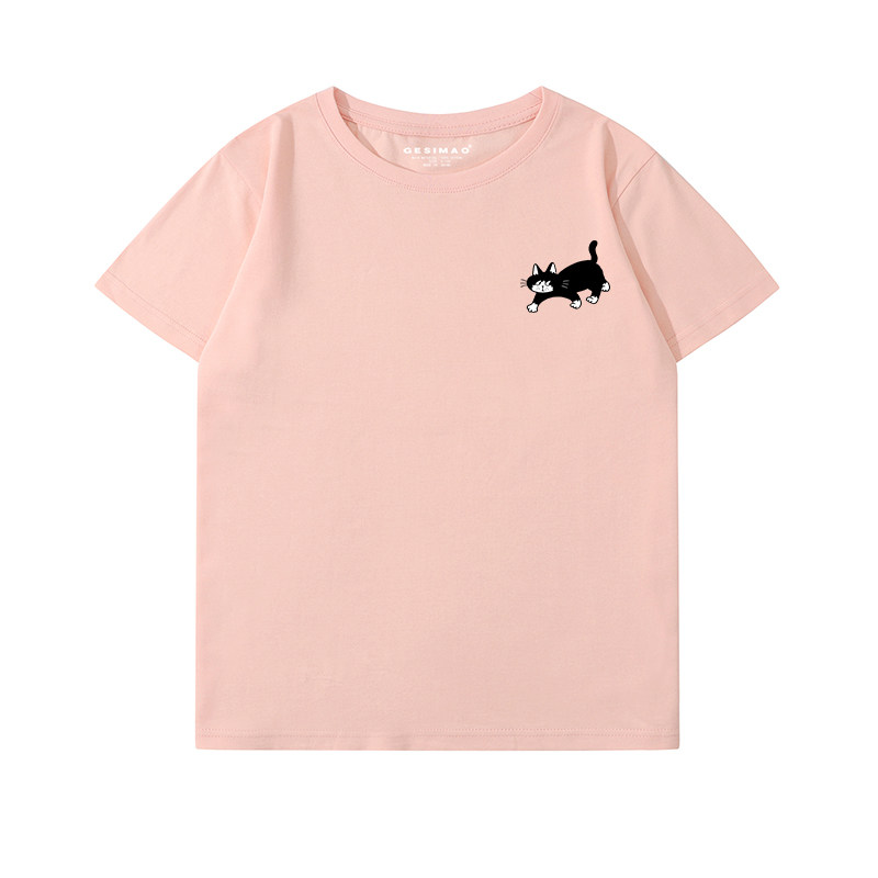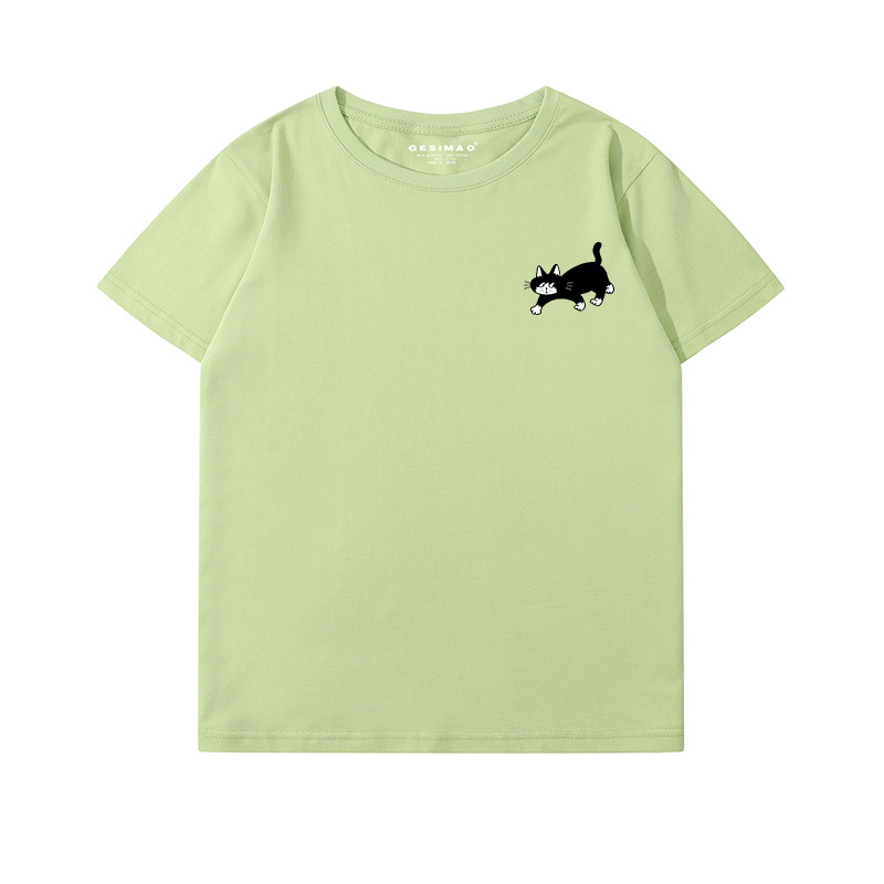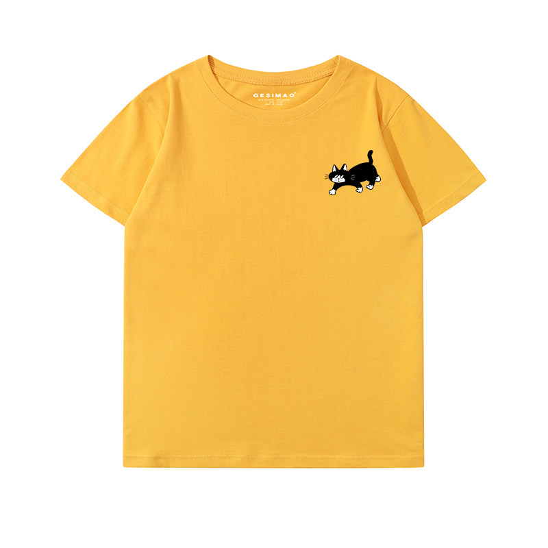 GESIMAO 大黑猫佐罗插画印花短袖T恤 小众百搭纯棉休闲情侣装上衣