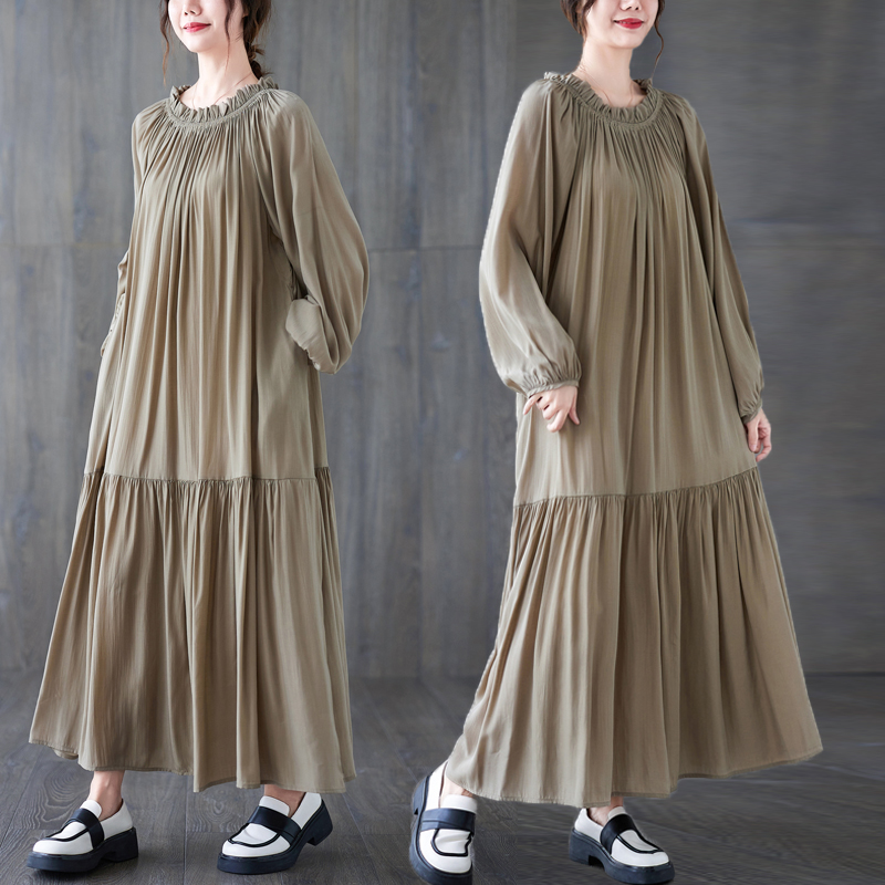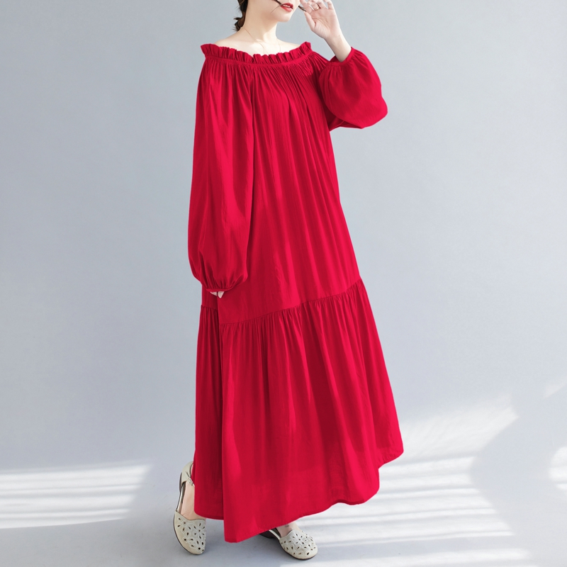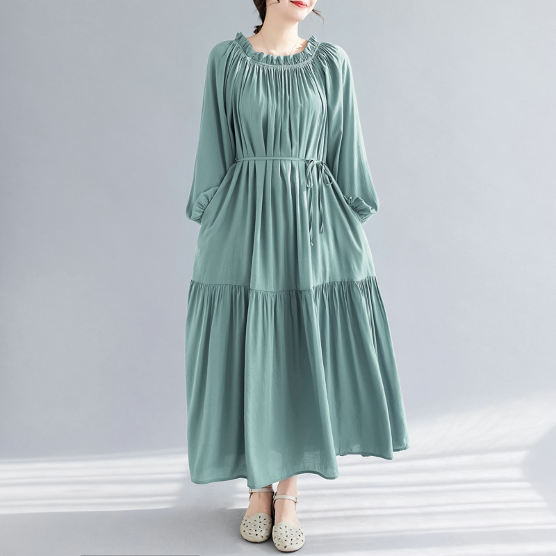 纯色仙女长裙搭海边度假西藏湖沙漠旅游拍照显瘦沙滩裙过膝长袖