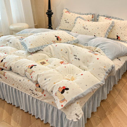 冬季加厚花边牛奶绒床盖四件套
