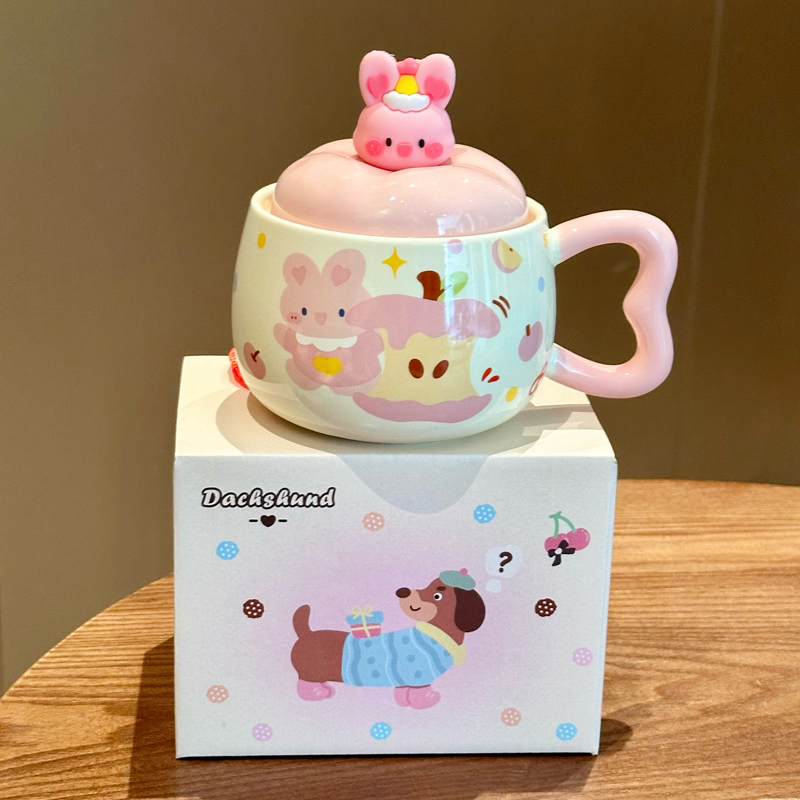 可爱苹果小狗超好看小兔陶瓷马克杯带盖送女生生日礼物伴手礼礼盒