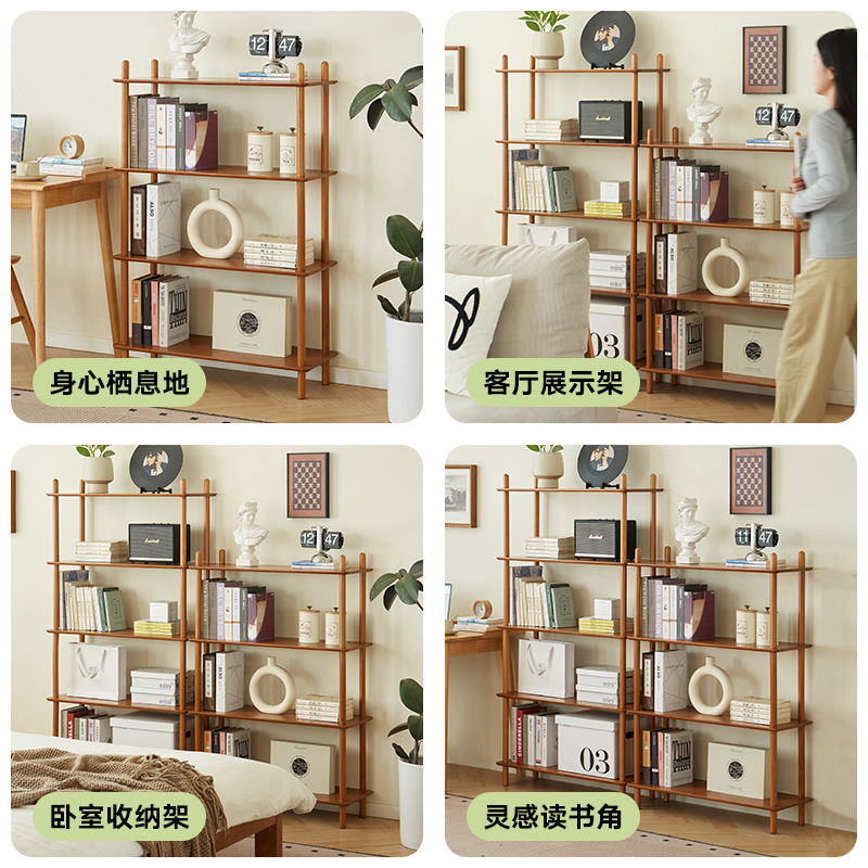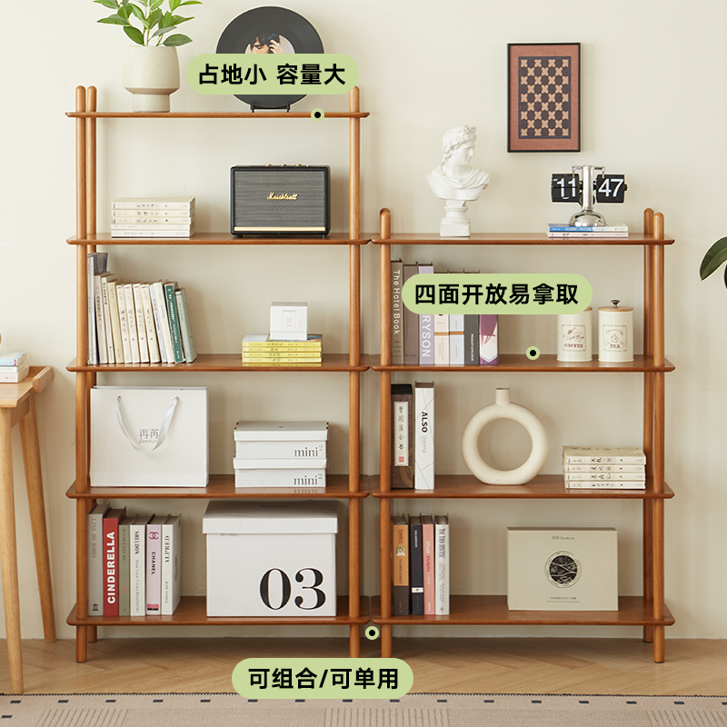 实木书架落地置物架家用儿童绘本架组合书柜展示架客厅玩具收纳架