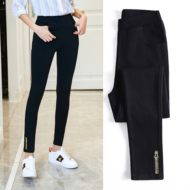 加肥加大码松紧高腰黑色小脚裤200斤弹力显瘦外穿胖妹妹打底长裤